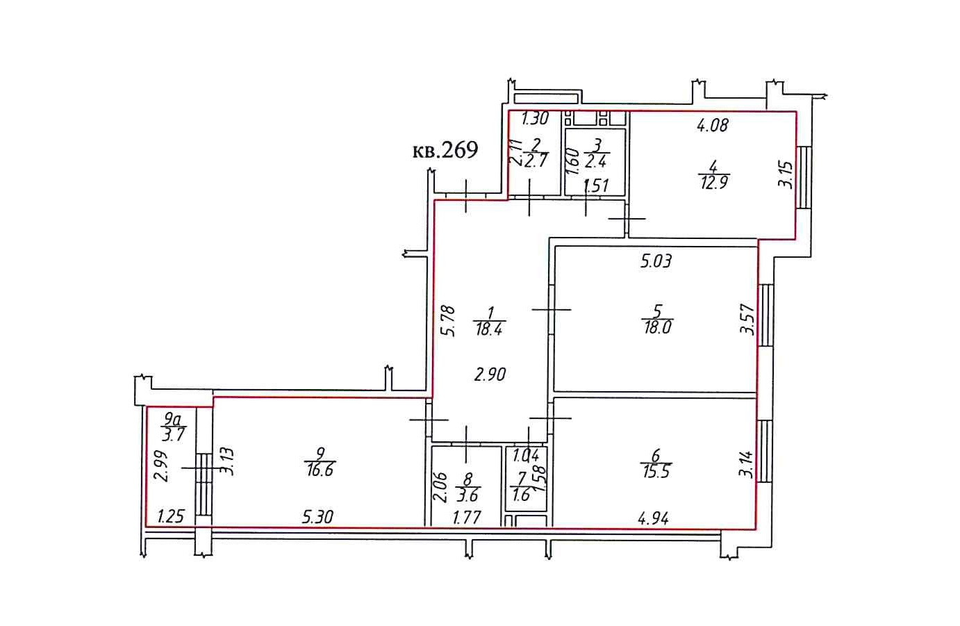 Общая площадь 91.7 м2
