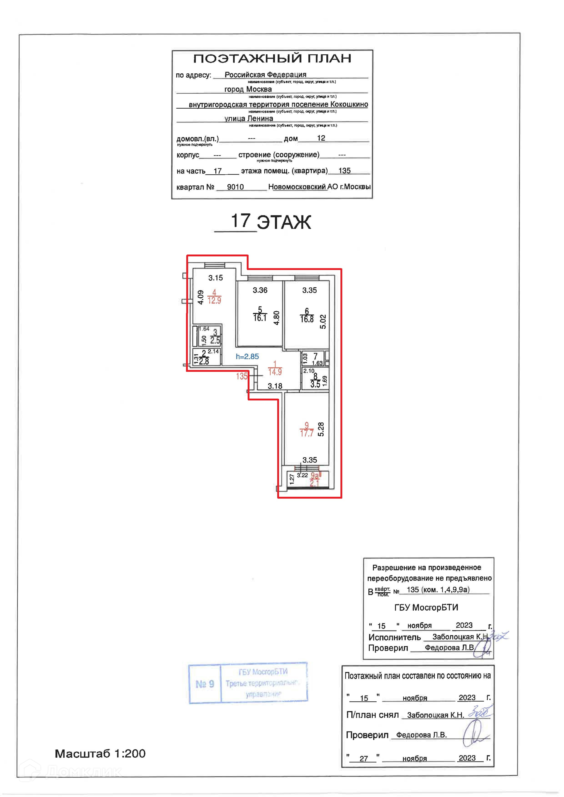 3-комнатная квартира, 88.9 м2, этаж 17 / 18, на продажу в дачном посёлке Кокошкино, улица Ленина, 12