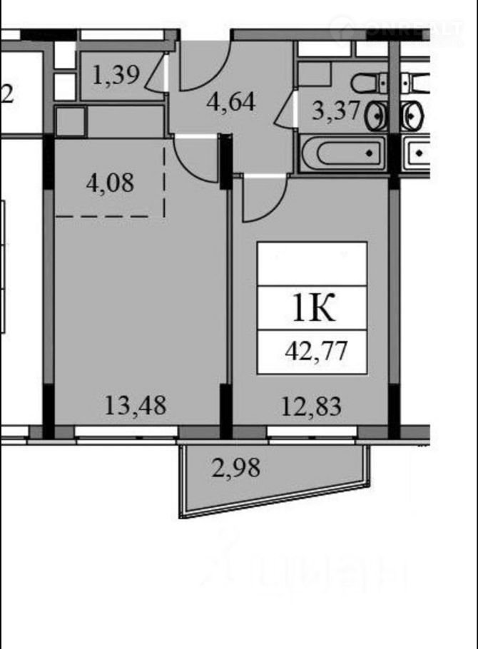 Балкон, лоджия 1 балкон