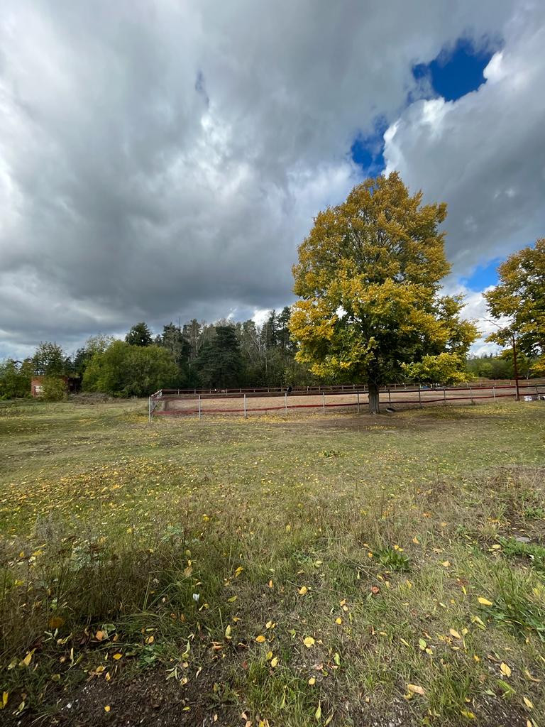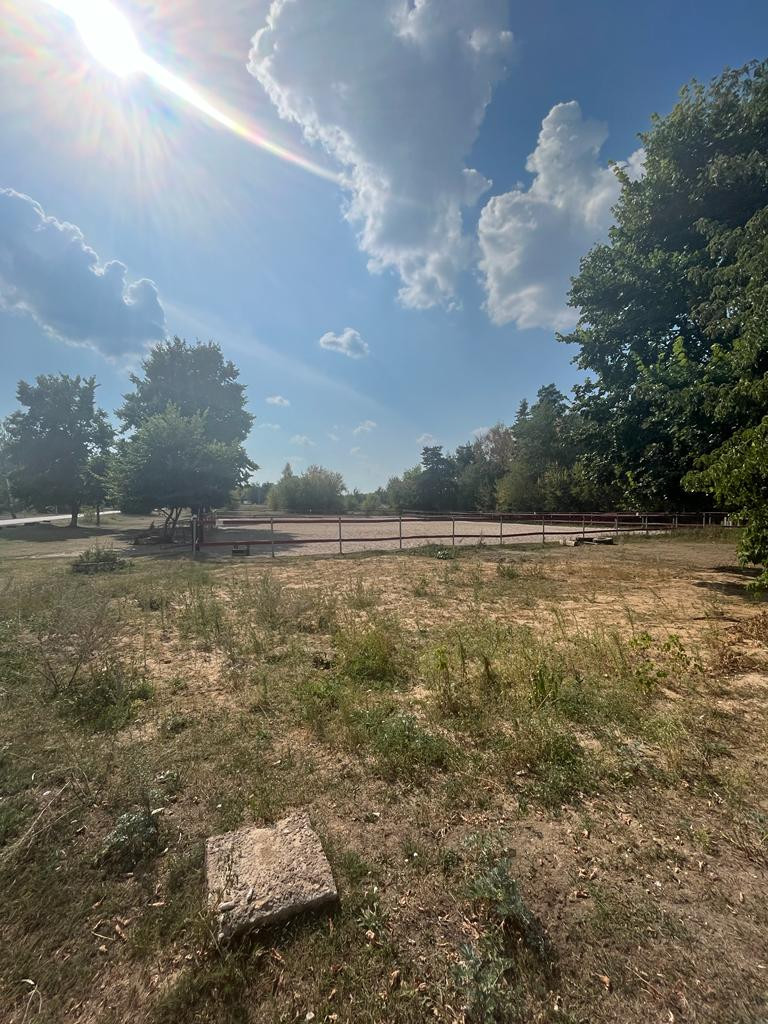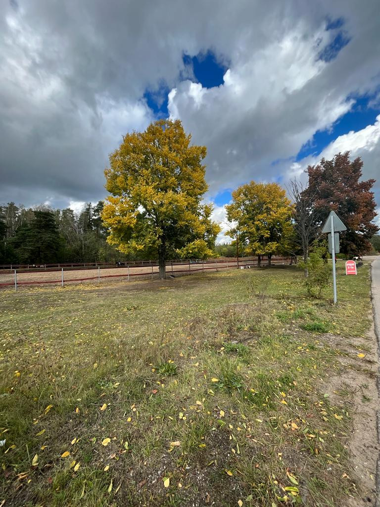 Напротив конно-спортивный клуб.