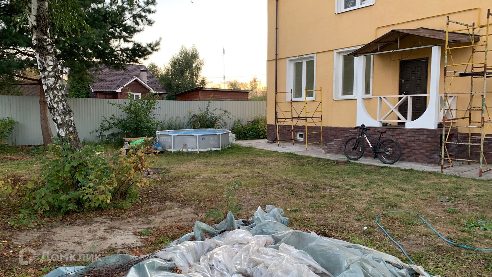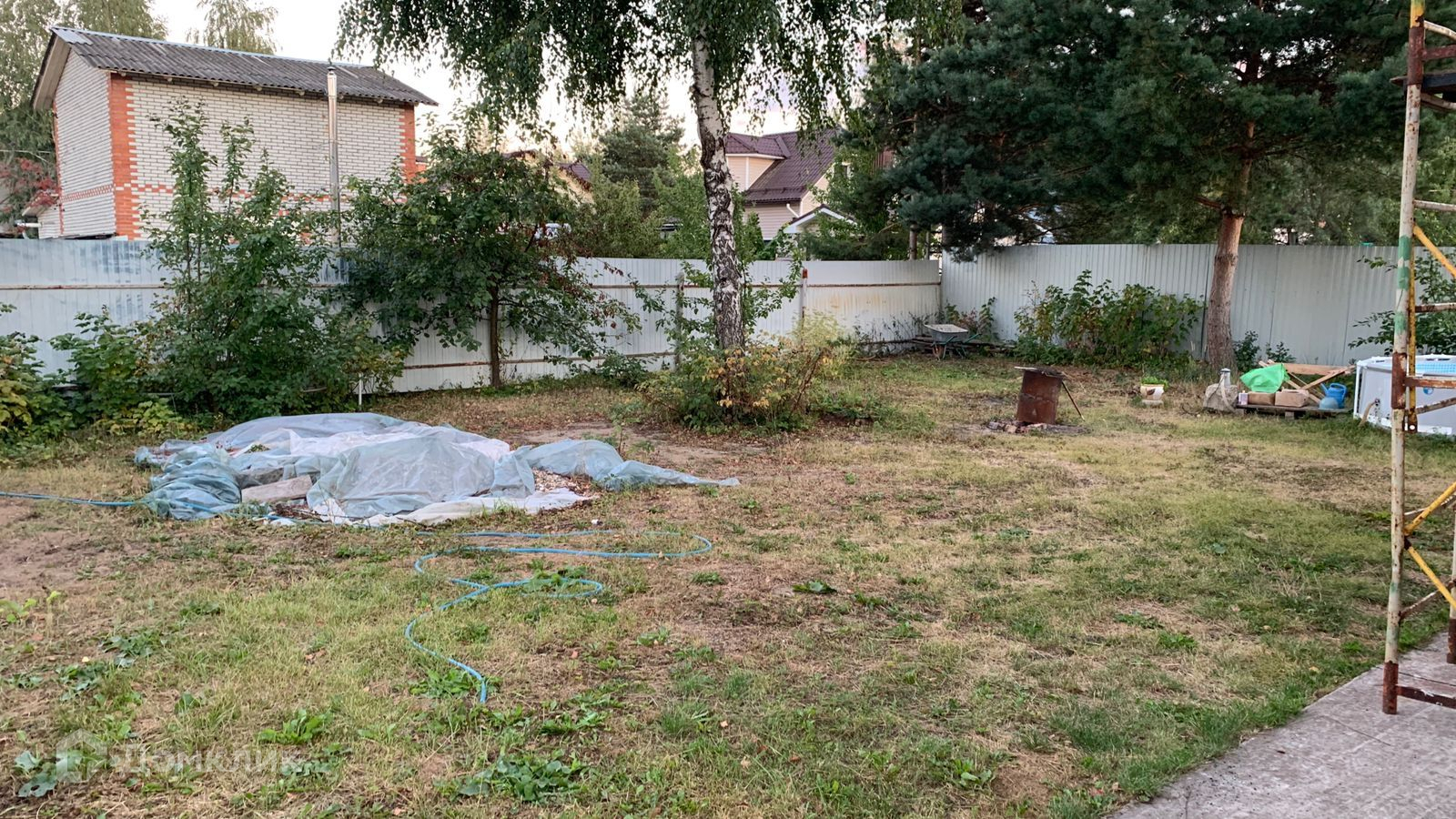 Участок ровный, со всех сторон огорожен. Соседи со всех сторон отстроились, многие проживают постоянно. На участке: есть место под машину, разборный бассейн, плодовые деревья, кустарники, клубника .
