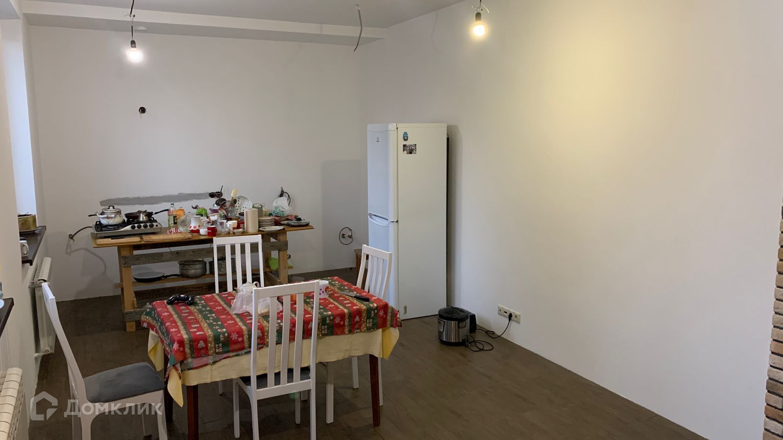 В доме на первом этаже находятся: крыльцо, прихожая, гостиная-столовая , с действующим дровяным камином, 1 спальня, санузел, котельная. Этаж полностью готов к проживанию, кухня почти доделана.