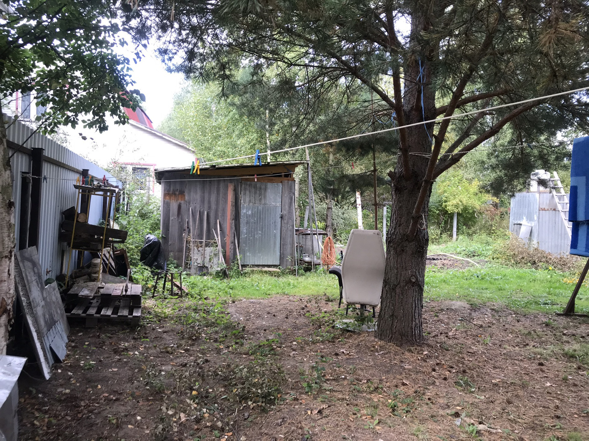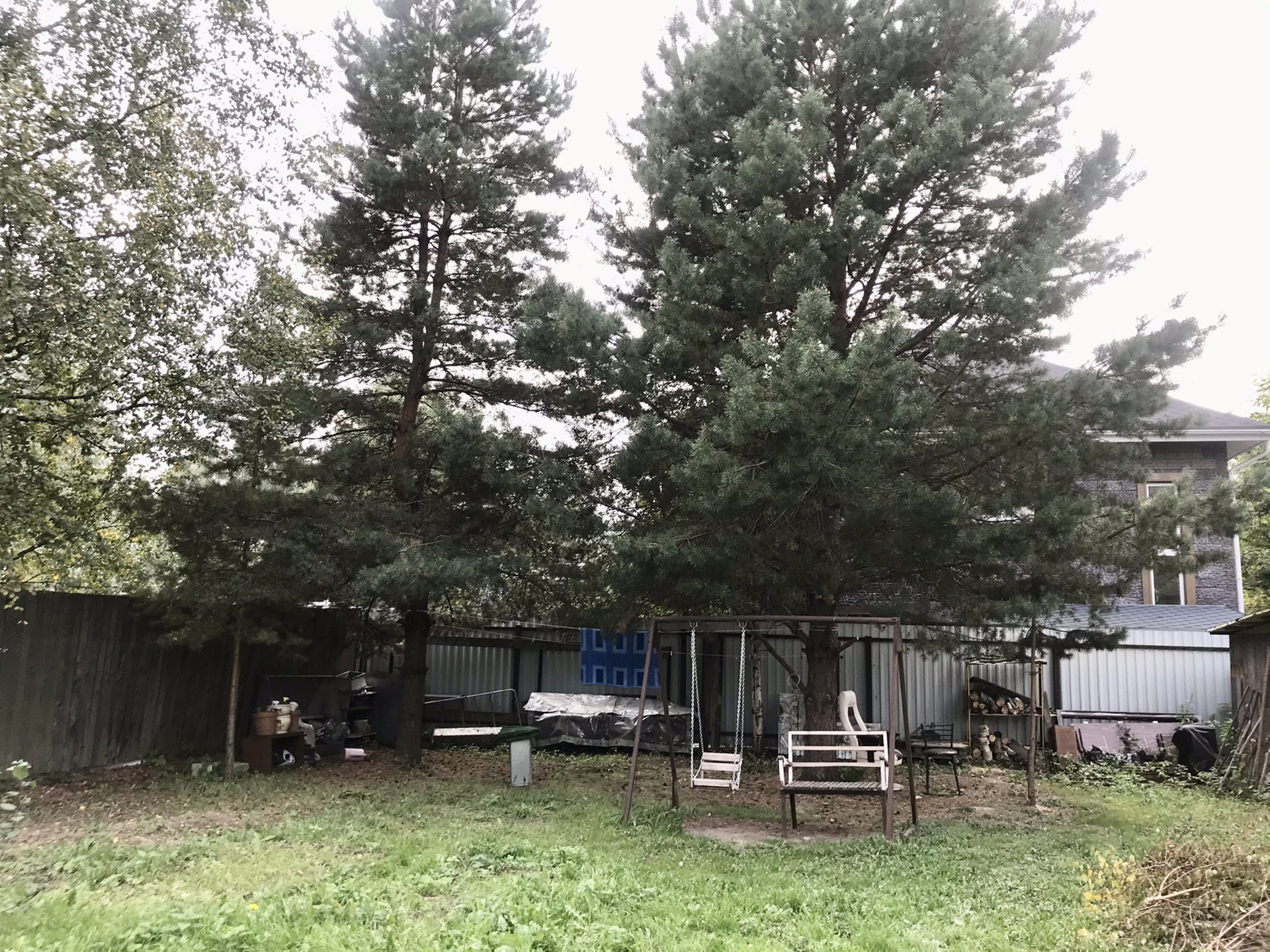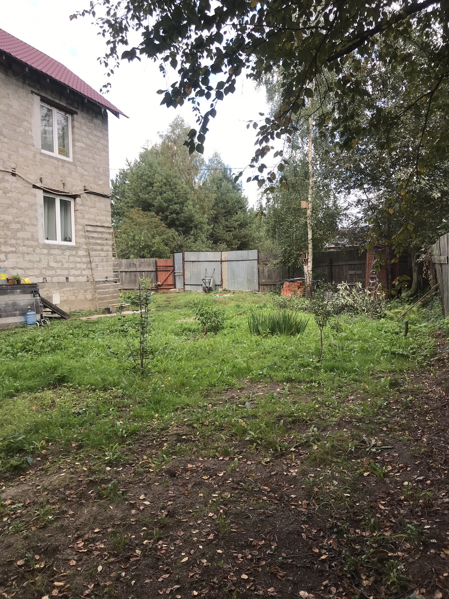 Участок обнесён забором, есть металлические распашные ворота и калитка.