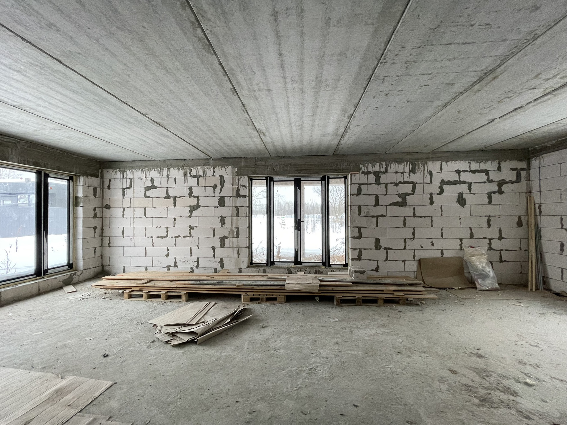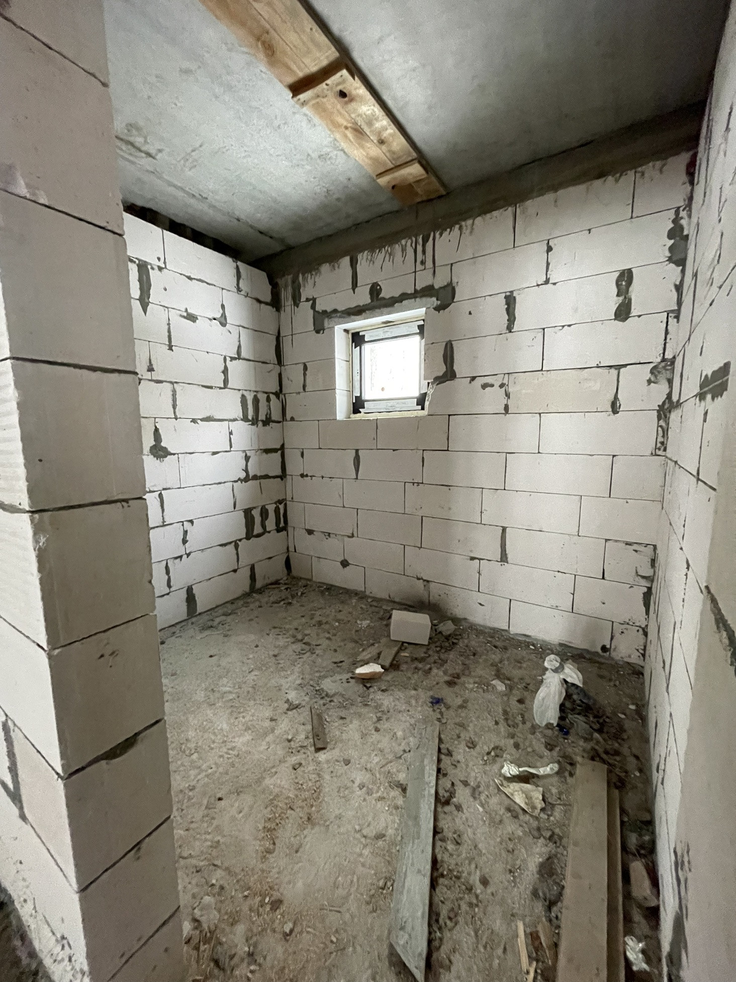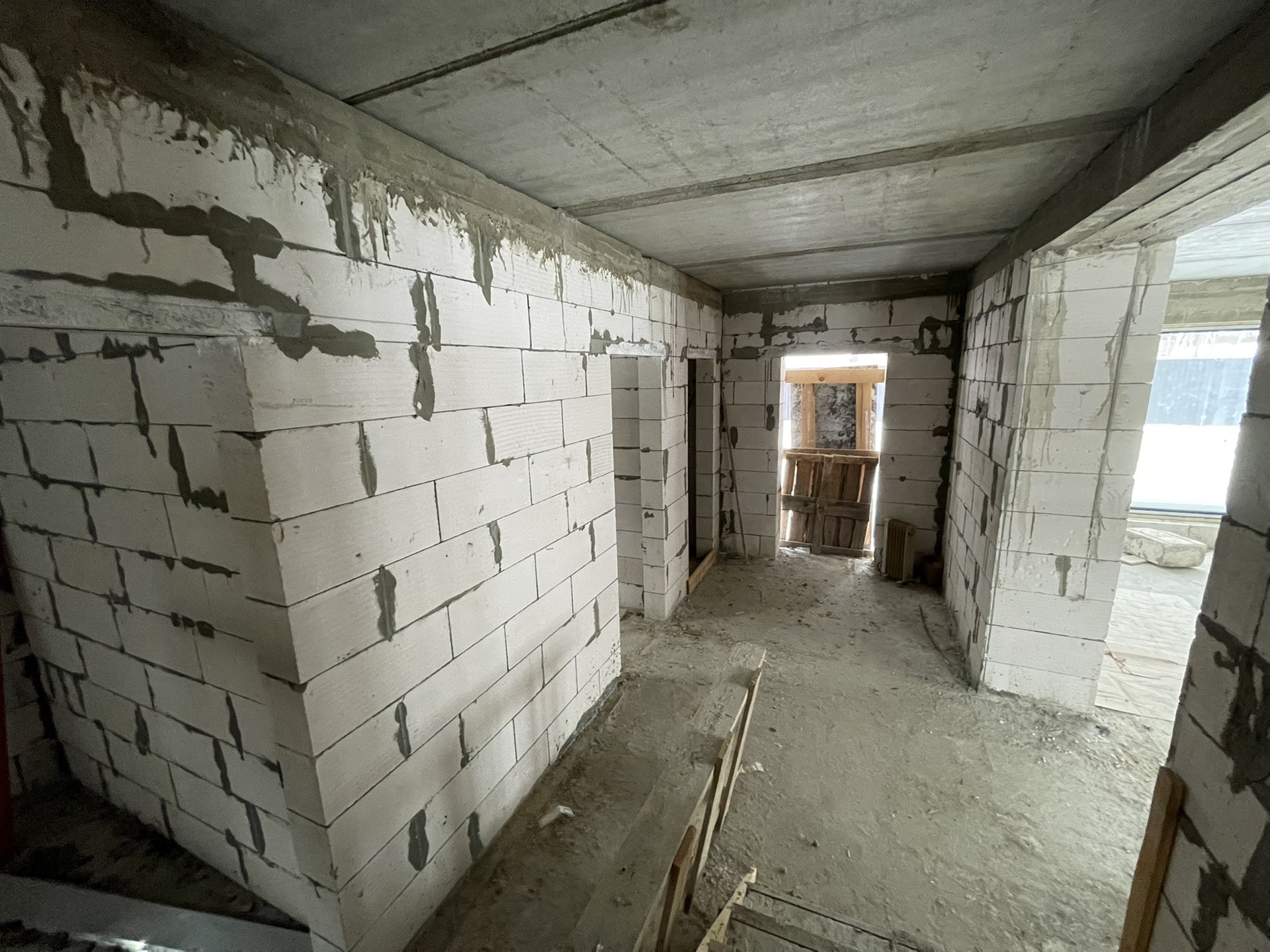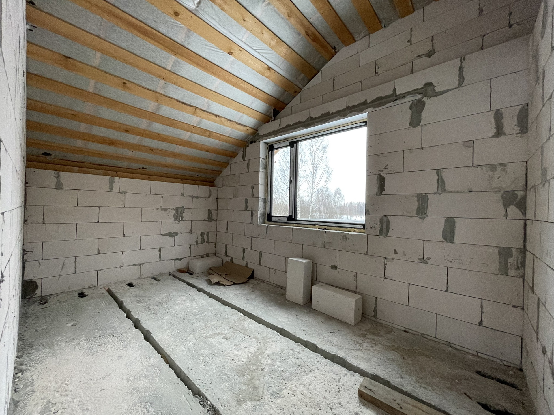 - Стены - стеновой блок (газобетон) Bonolit Projects, плотность D500, размер 600*400*200 мм, отличается очень хорошей теплоизоляцией, звукоизоляцией и морозостойкостью. Каждые 3 слоя идёт армирование прутком для большей прочности и надежности конструкции. Армированный монолитный пояс связки 1 и 2 этажей.