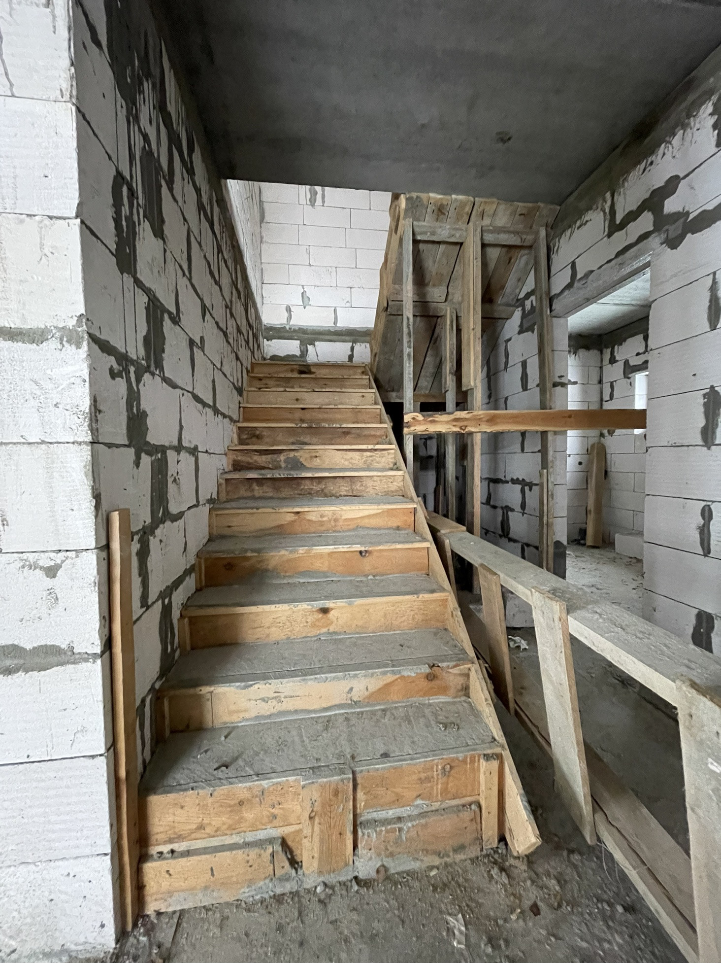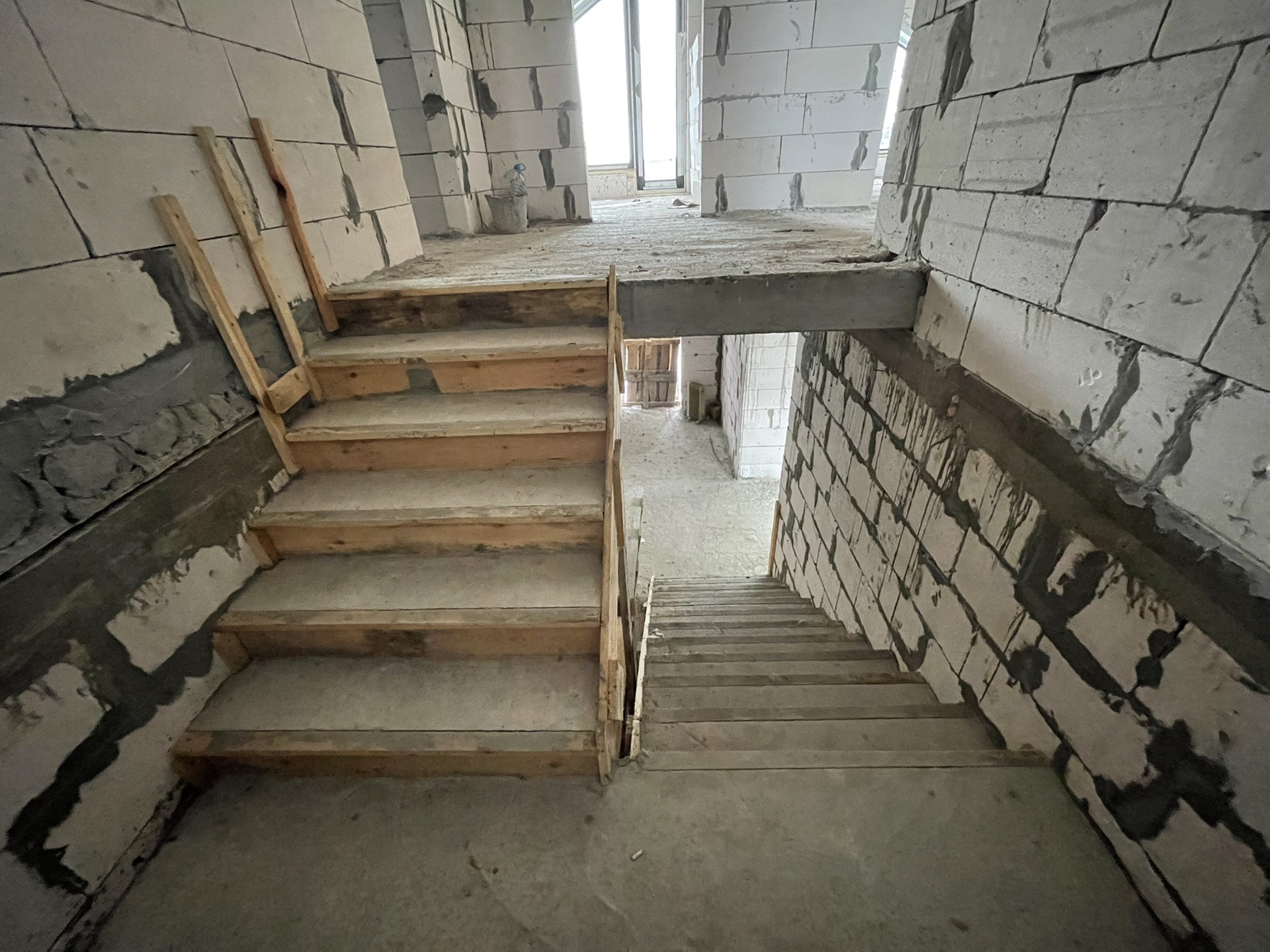 - Лестница на 2-й этаж двухмаршевая с площадкой из армированного бетона М400, ширина в марше 1,10 м.