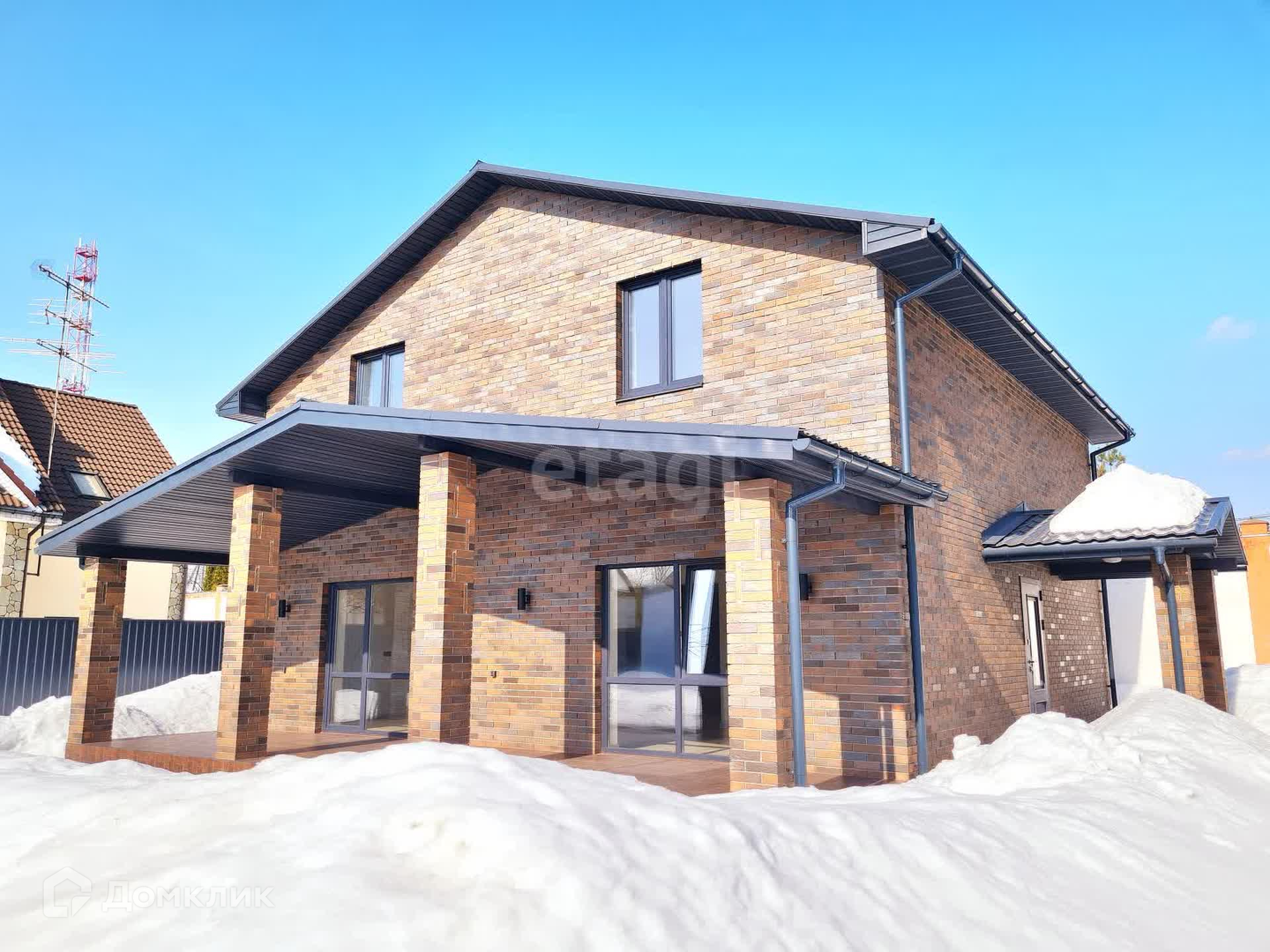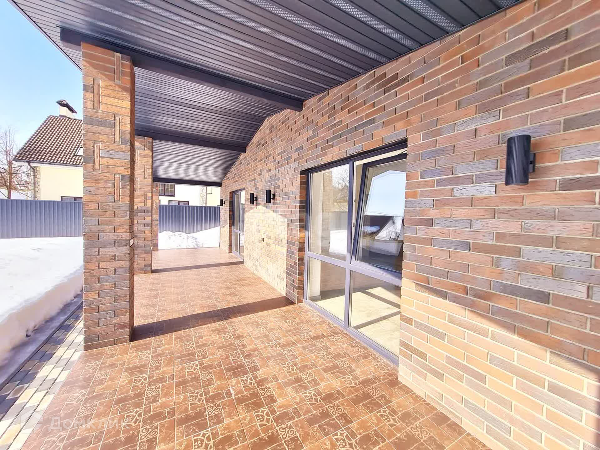 Дом возвышается на участке площадью 6 соток, созданный из прочного газосиликатного блока на монолитной плите. Снаружи облицован кирпичом BRAER, крыша увенчана металлочерепицей – обеспечивающее долговечность и защиту от природных стихий.