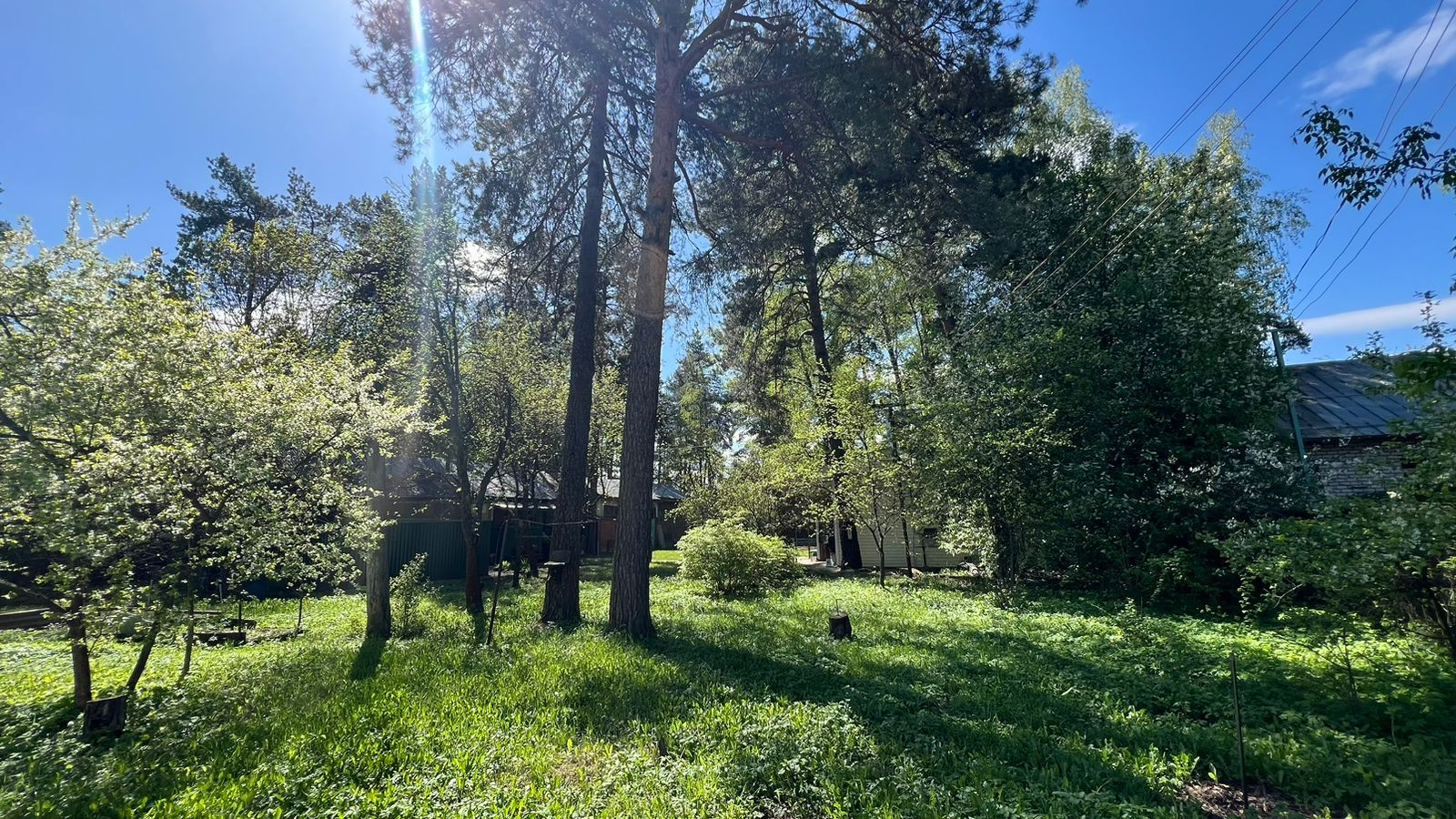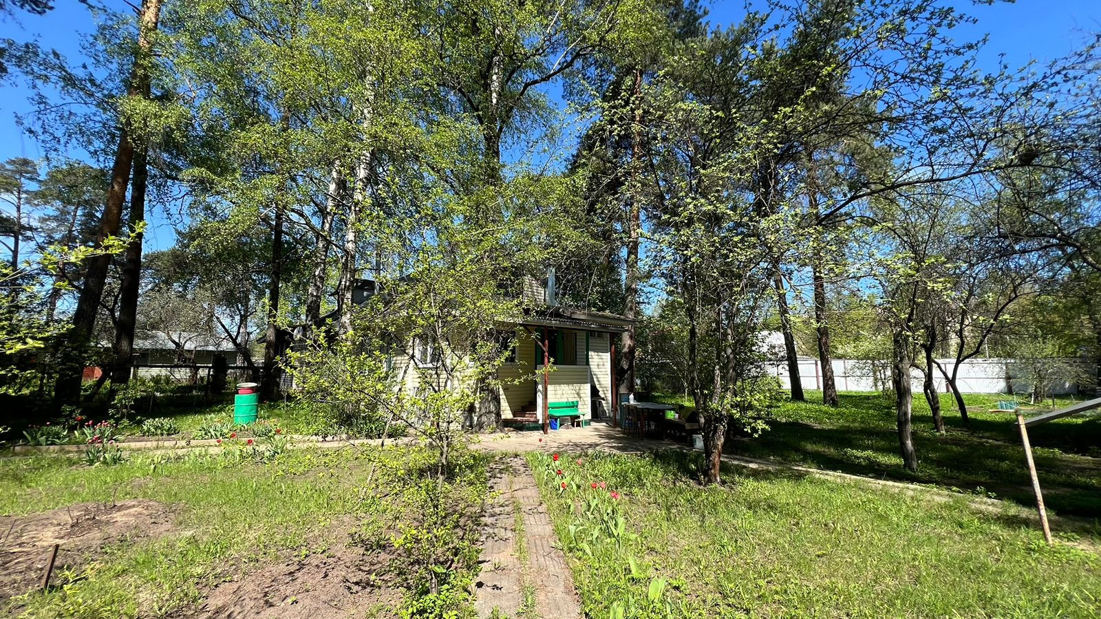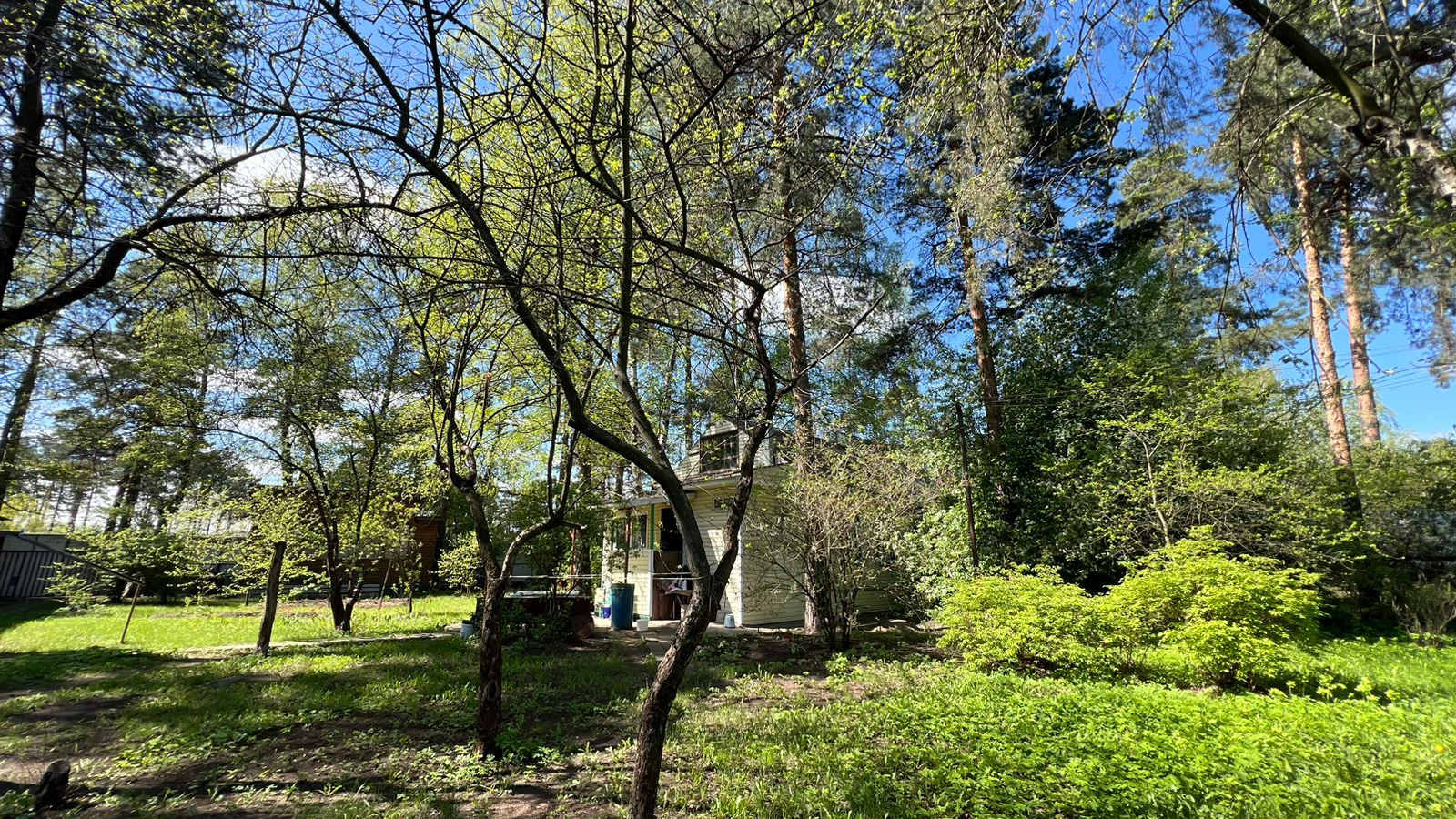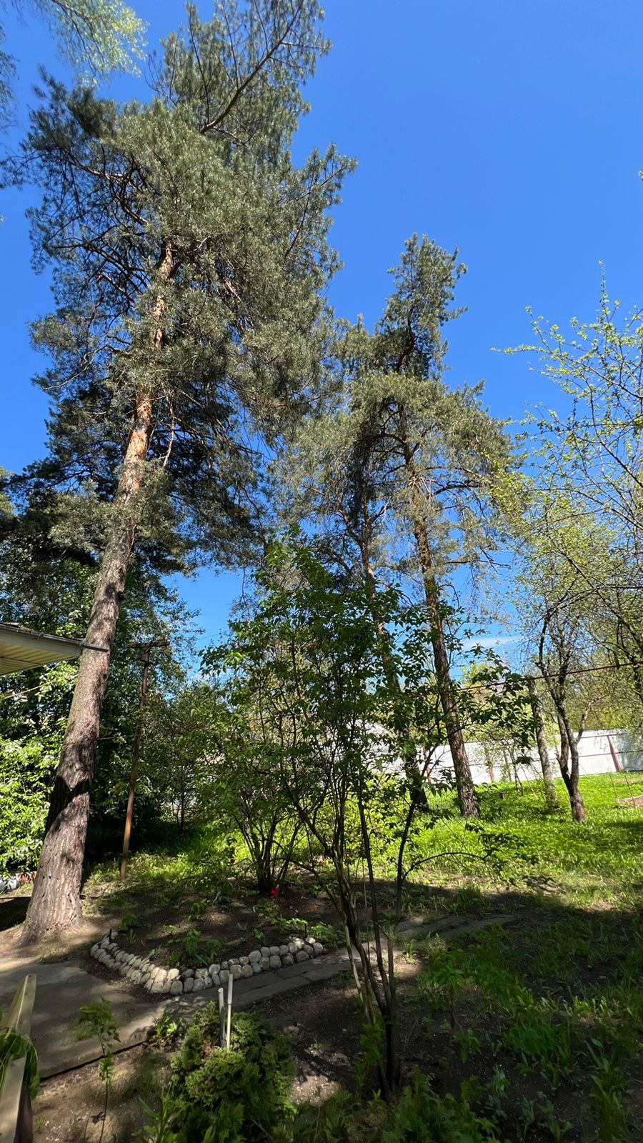 Участок полностью обустроен, растут плодовые деревья, шикарные сосны, декоративные кустарники, цветы.