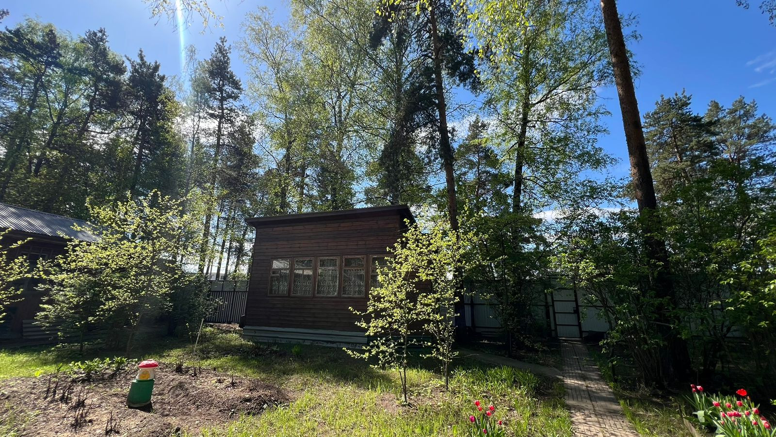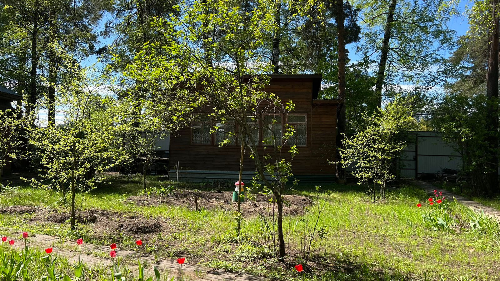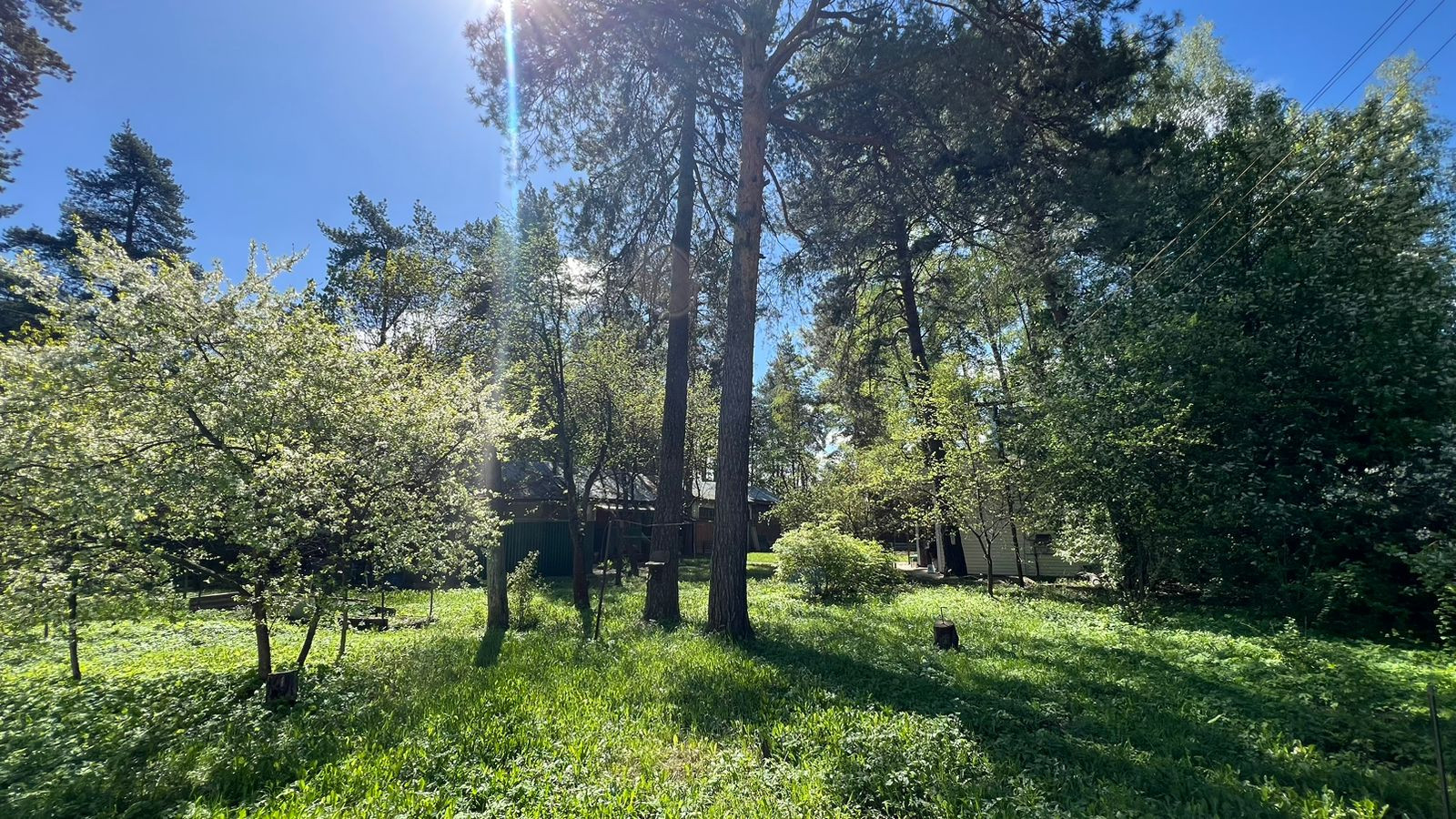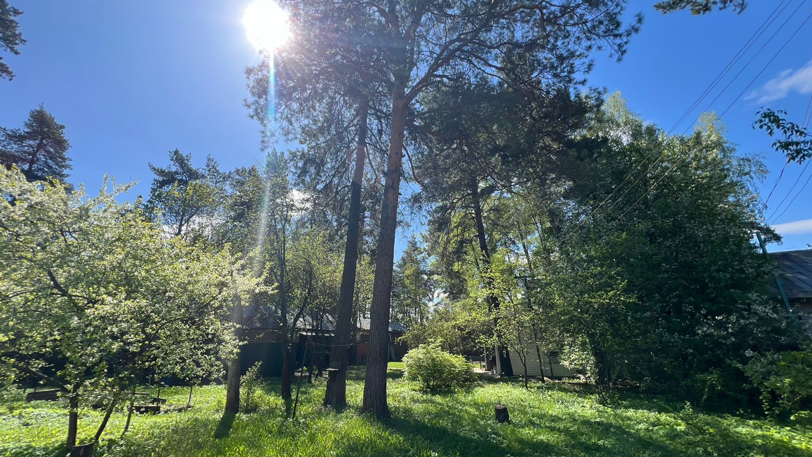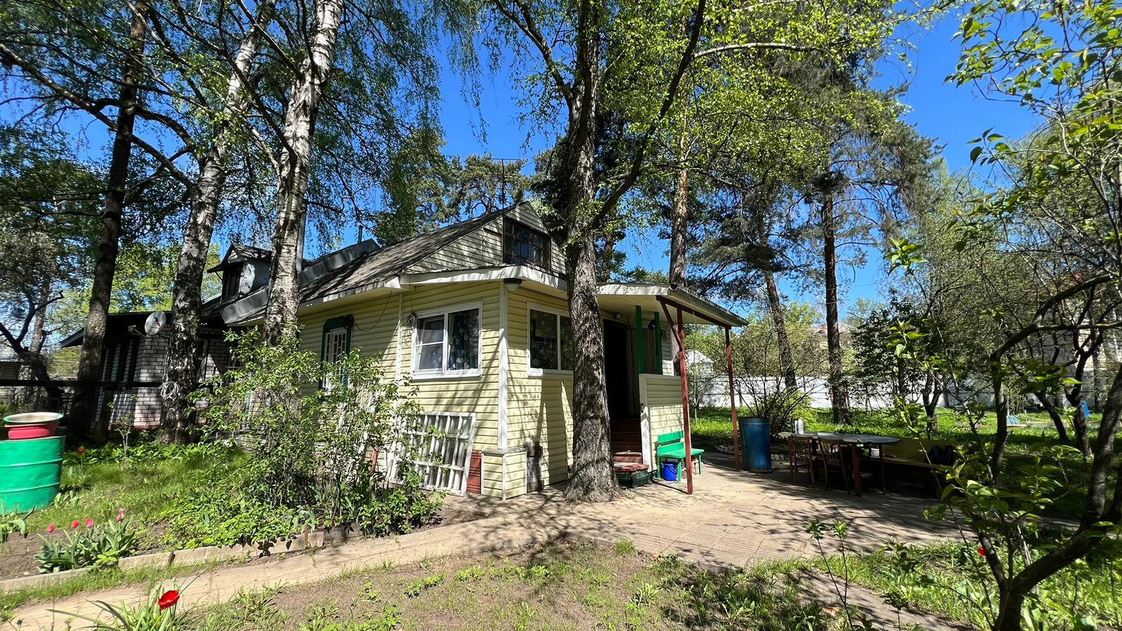 Участок полностью обустроен, растут плодовые деревья, шикарные сосны, декоративные кустарники, цветы.
