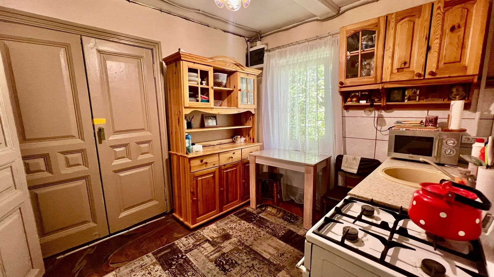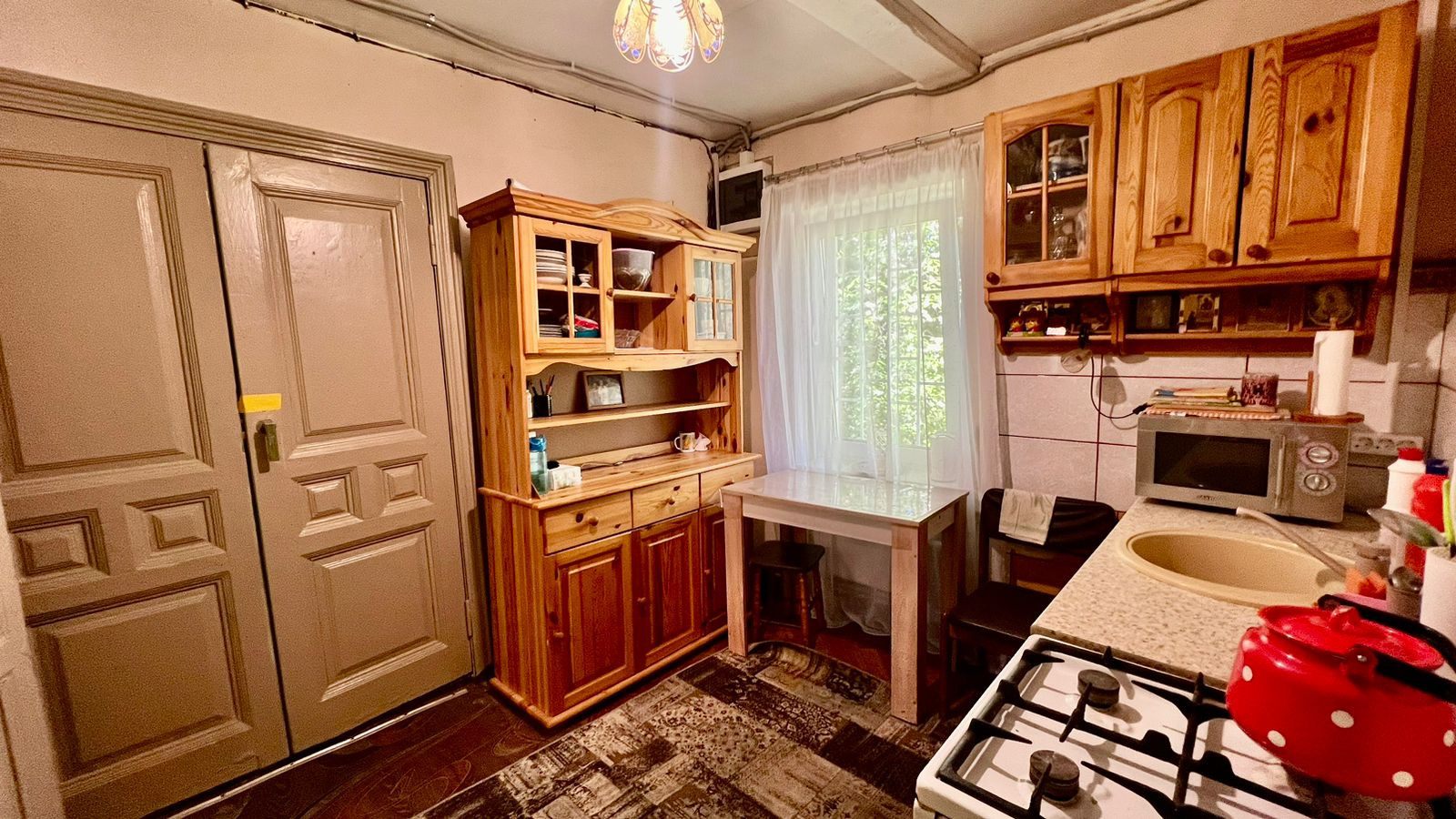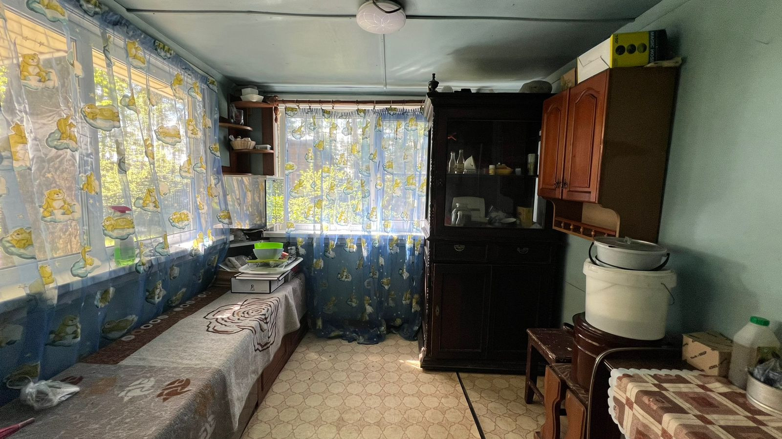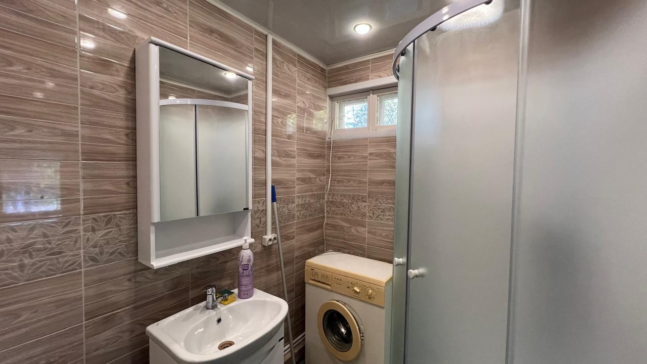 Дом 84,1 кв.м. щитовой. Дом очень теплый, есть все необходимые коммуникации: проведено отопление, газ и вода, канализация. В доме две изолированные комнаты, кухня и веранда. В доме совмещенный санузел, установлены душевая кабина, стиральная машина, бойлер, унитаз и раковина. Дом предназначен для круглогодичного проживания.