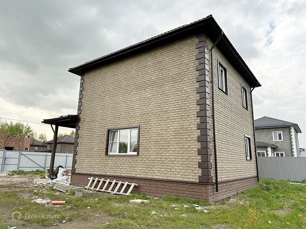 Построен из блоков на армированном ленточном фундаменте, утеплен, снаружи обшит сайдингом.