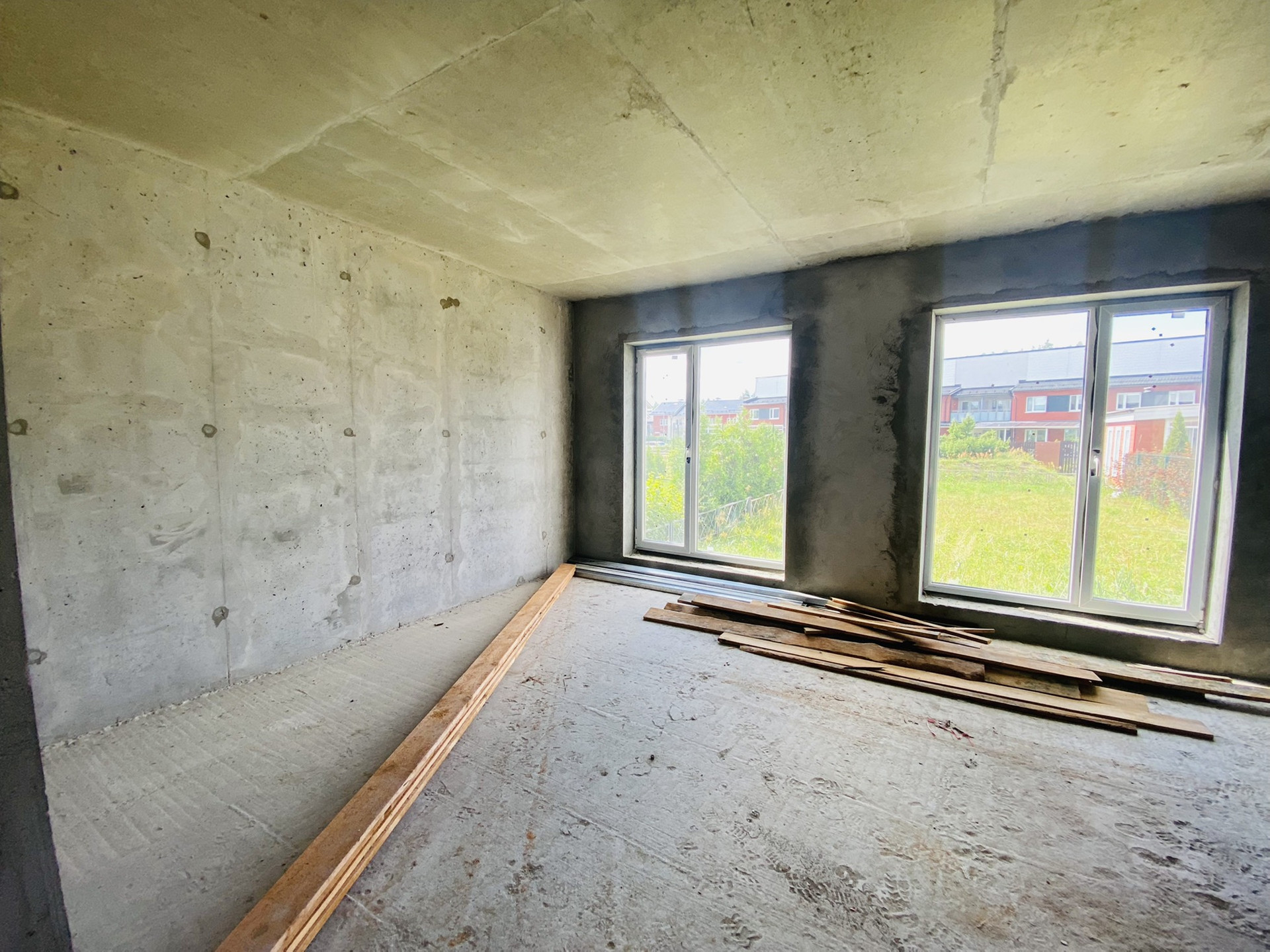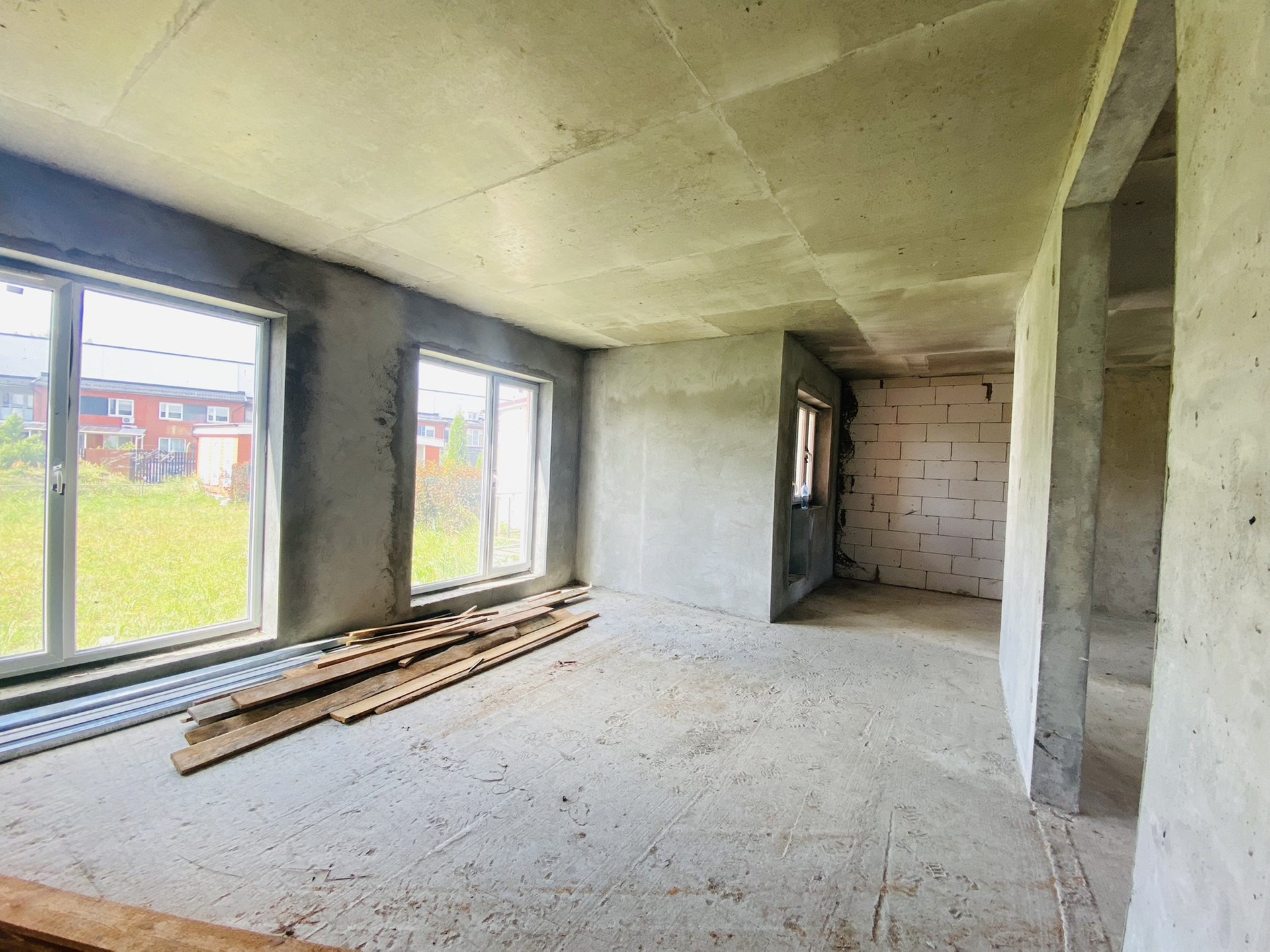 Шикарные "окна в пол" во внутренний двор - ровный стриженный газон (места достаточно для сада/огорода с барбекю и детской площадкой.