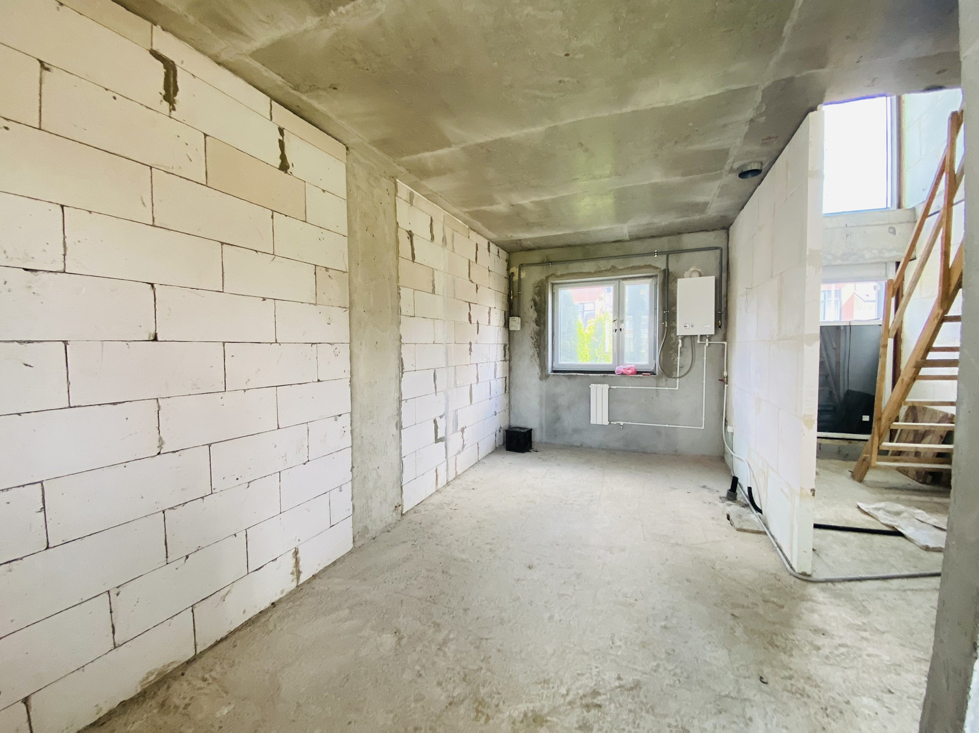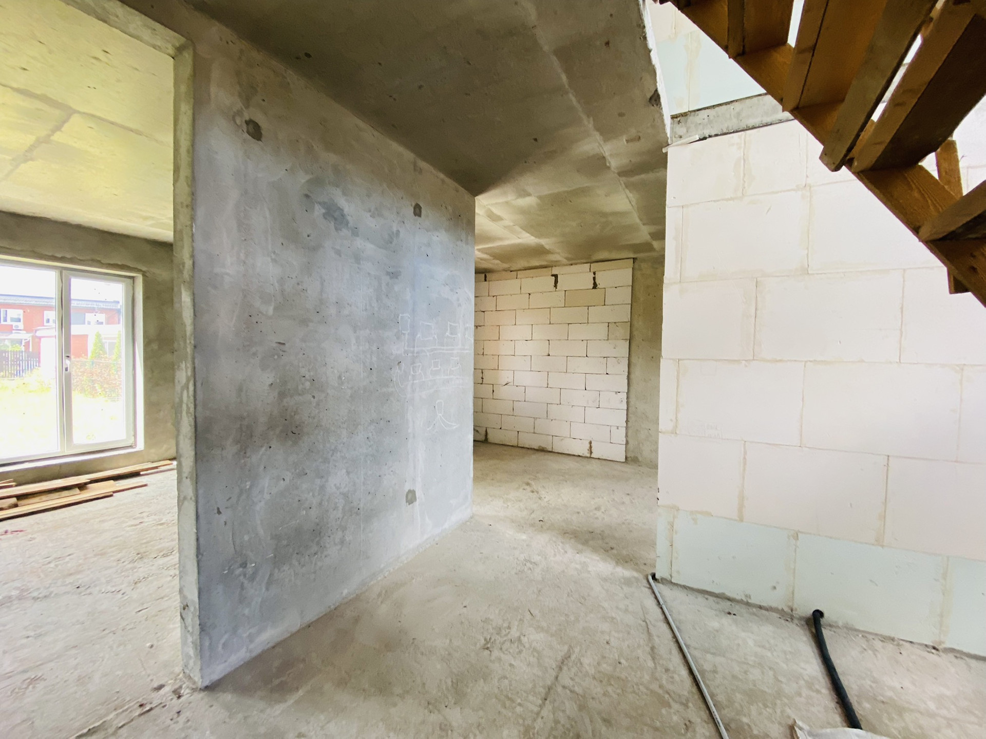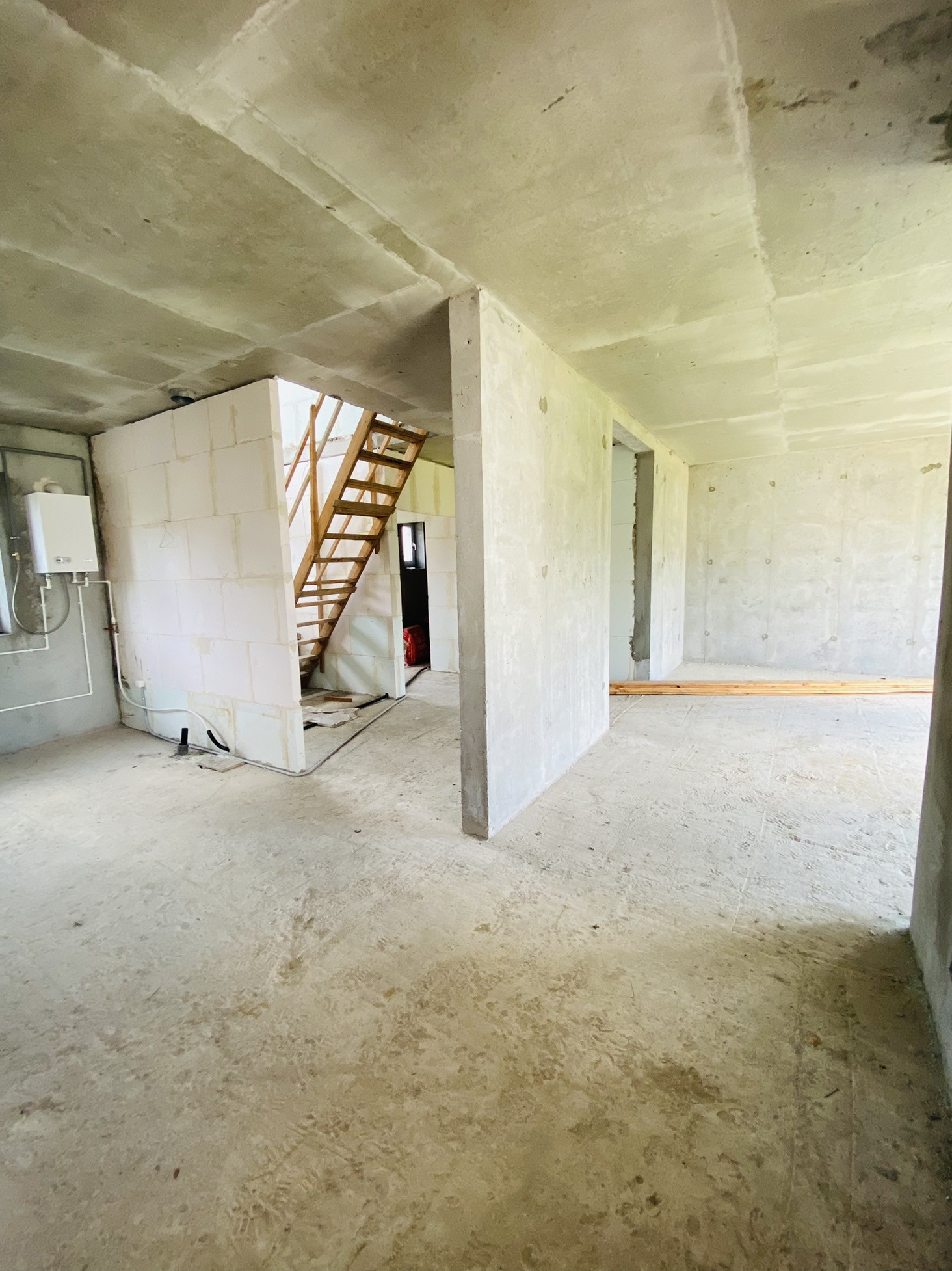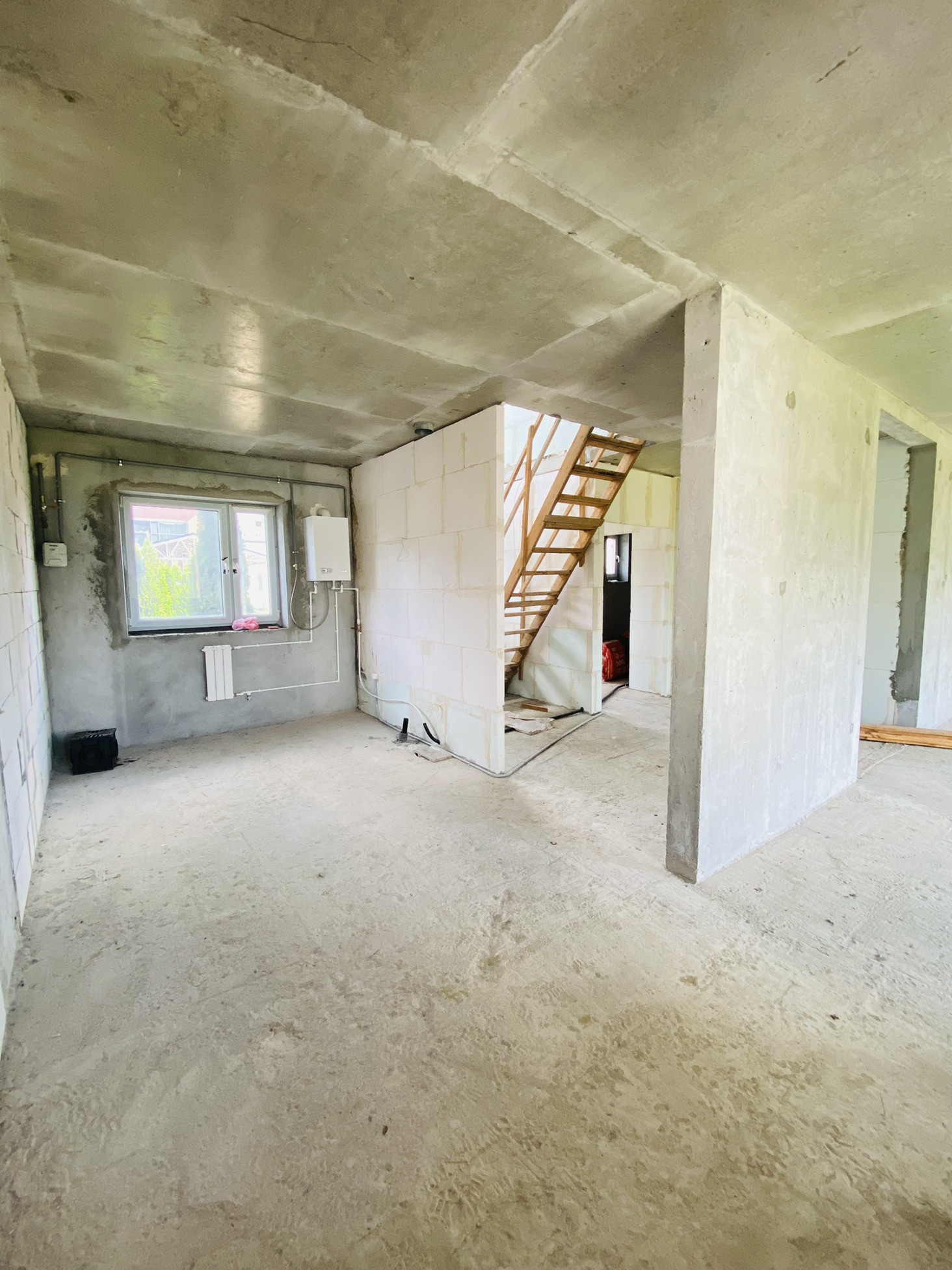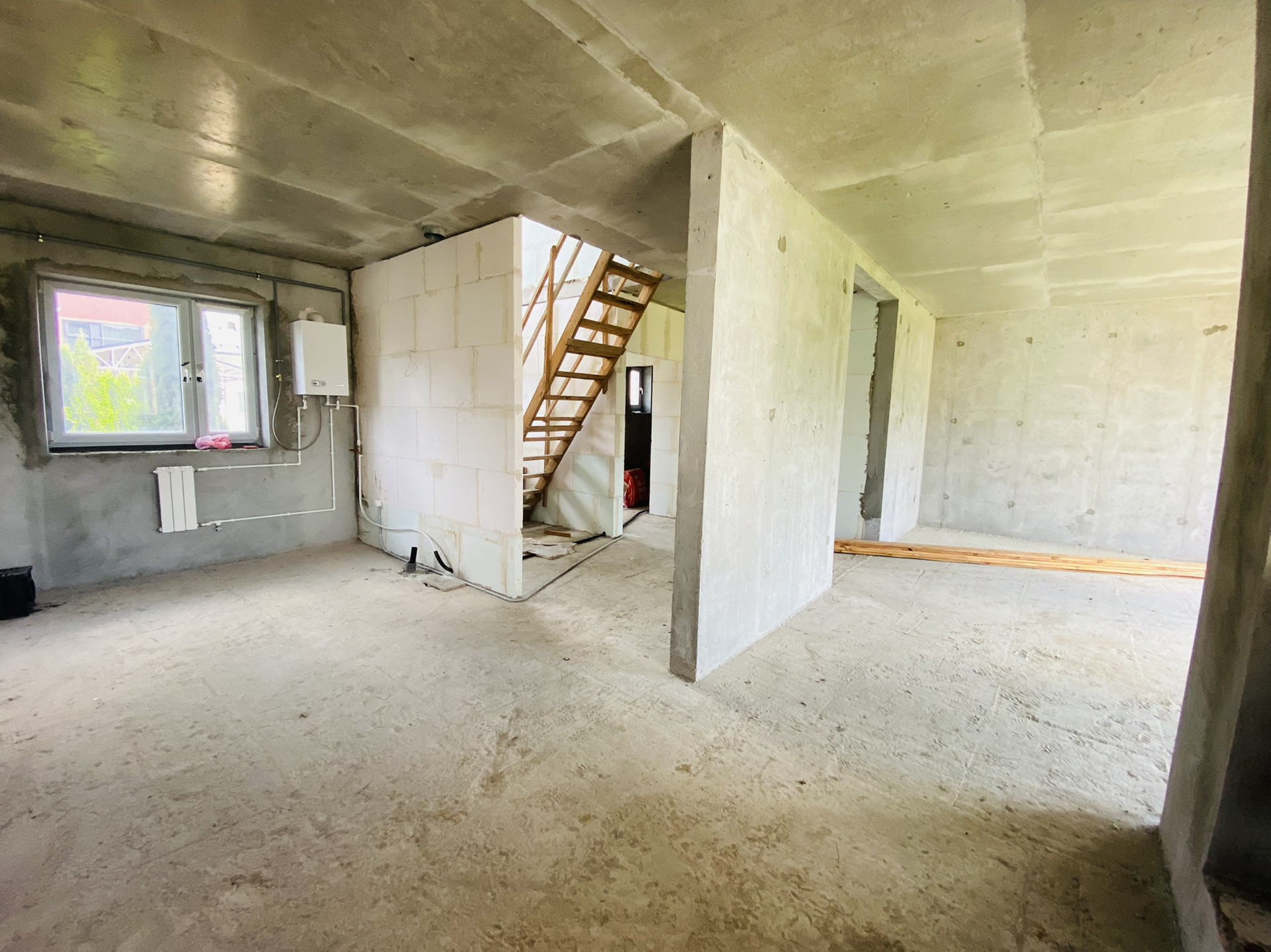 Сам дом удачно расположен по сторонам света. Стены и пол из монолитного железобетона, перегородки из газоблоков.