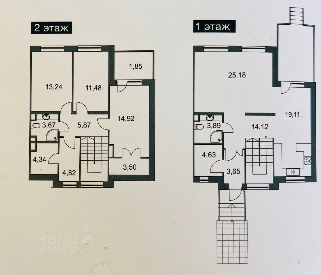 Площадь комнат на первом этаже: 25 кв.м. на гостиную, 19 кв.м. на кухню, санузел, бойлерная.
