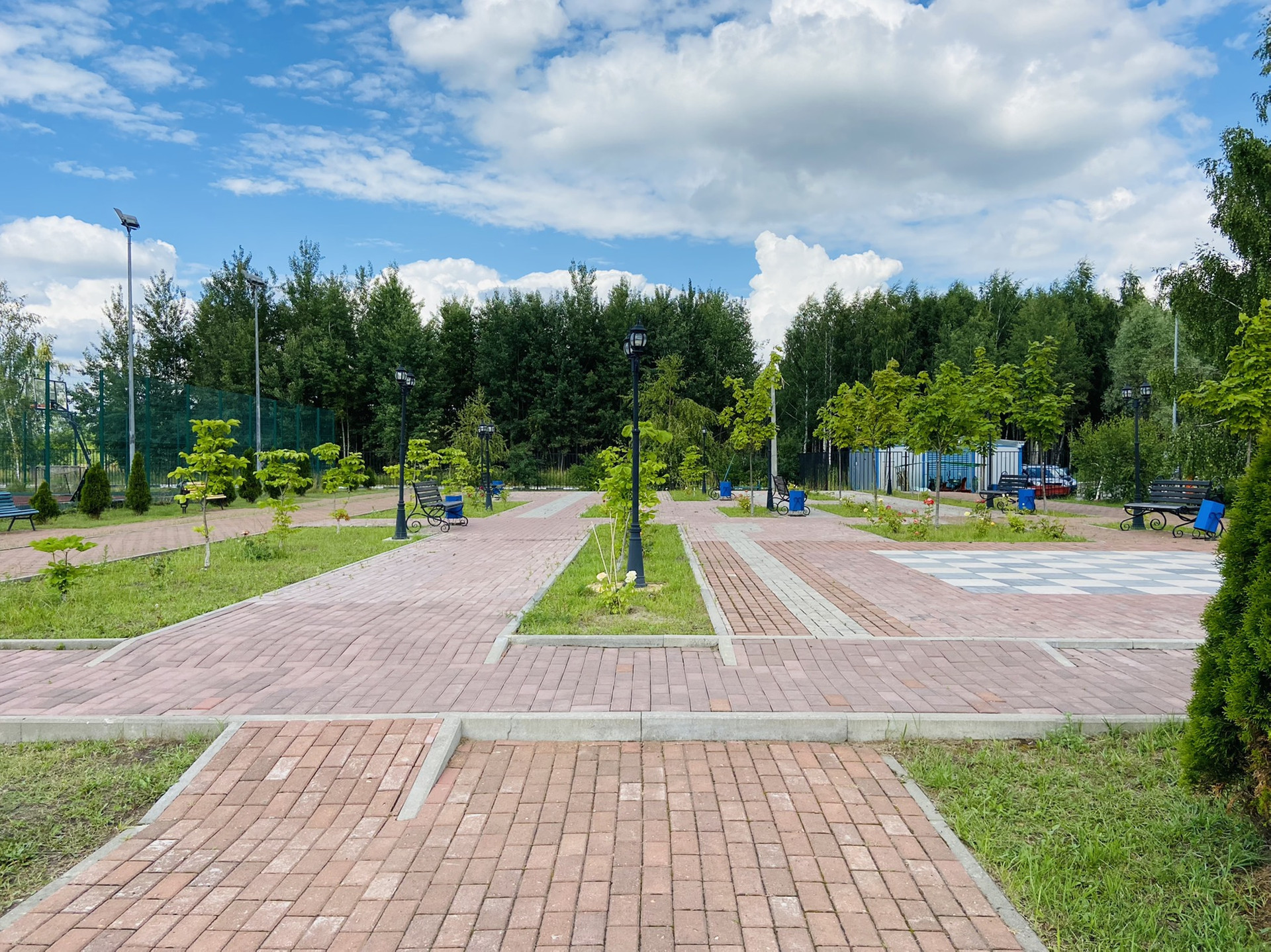 По инфраструктуре: детская площадка, теннисный корт, футбольная/баскетбольная площадка, парковая зона с лавочками в самом посёлке, прямо за забором только что построенный муниципальный детский сад и магазин "Дикси" на въезде в посёлок.