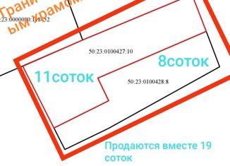 Продается участок правильной формы (20 на 40 метров). Находится в процессе выдела из основного земельного участка 50:23:0100611:18. На схеме открашен серым. Предпоследний участок по улице Тихая . |