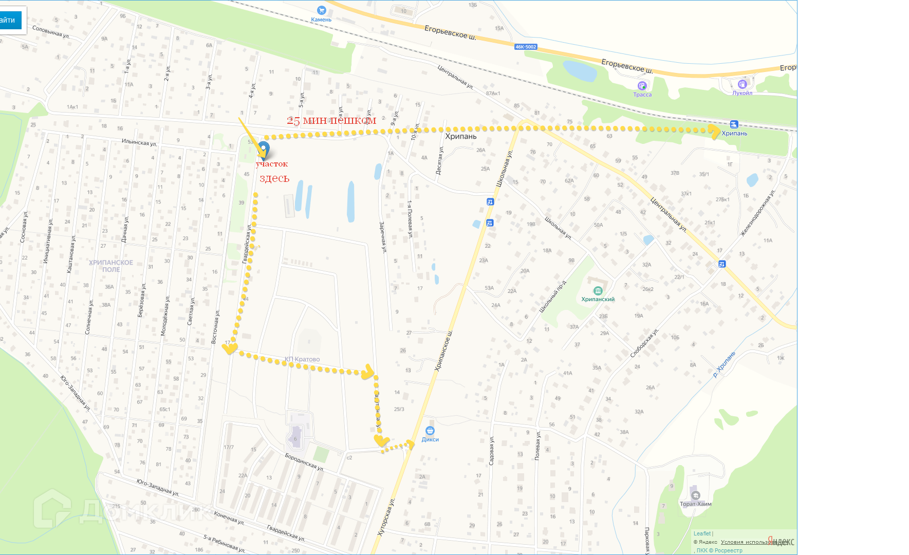 Пешая доступность до ж/д Хрипань,  автобусной остановки,  магазина Дикси.