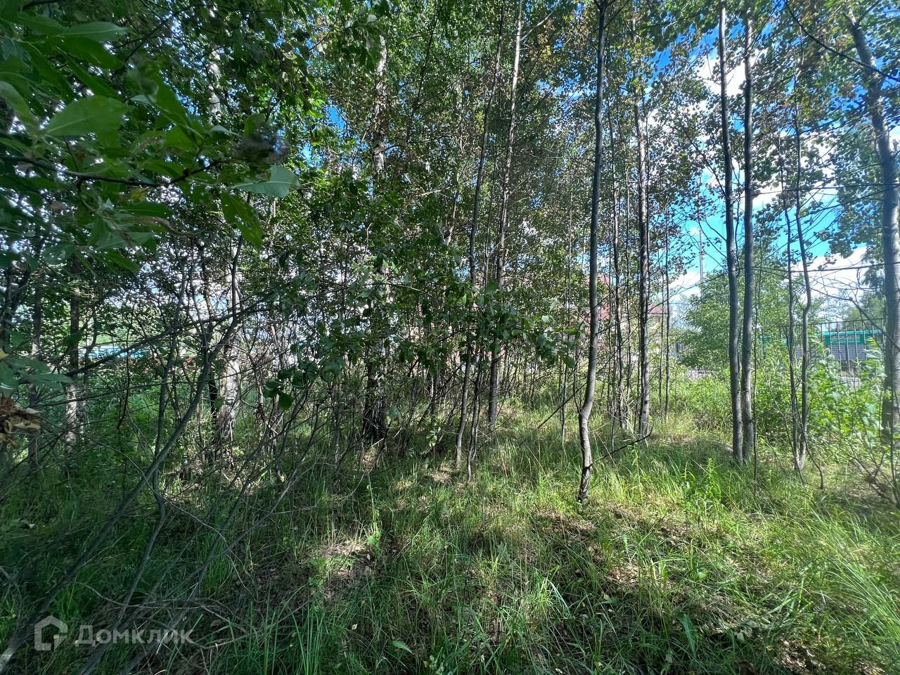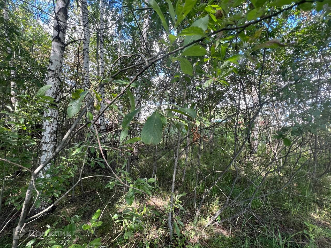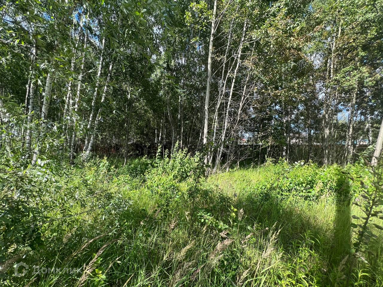 Участок ровный, прямоугольной формы с берёзовой рощей посередине.