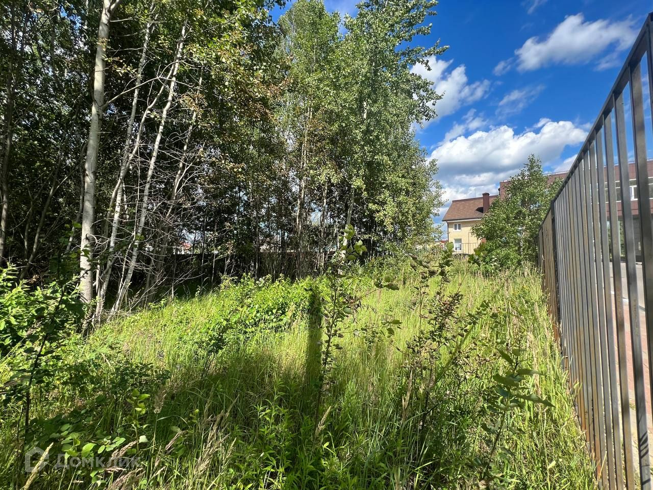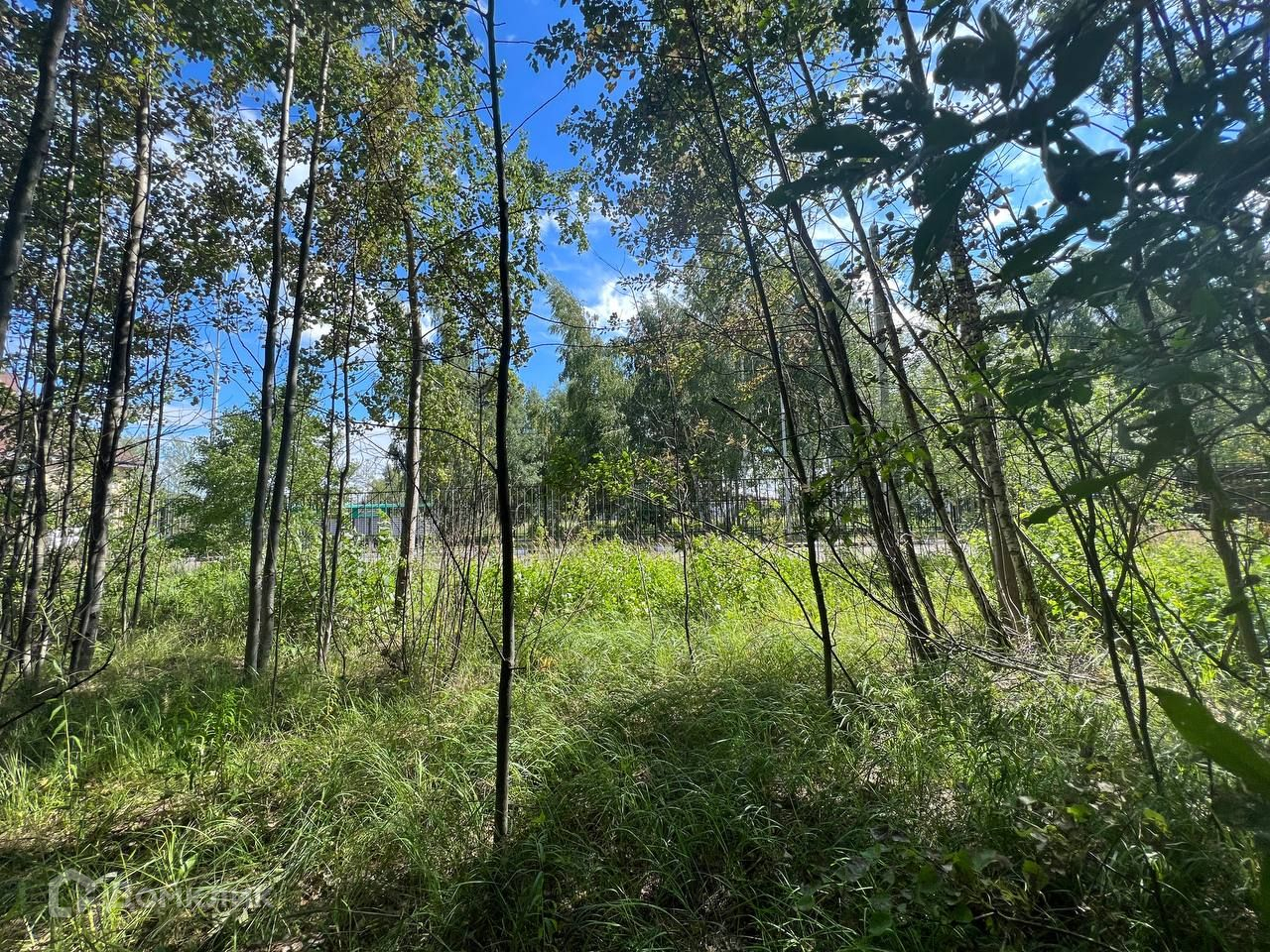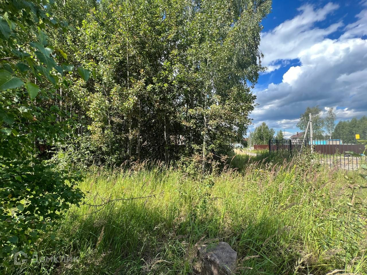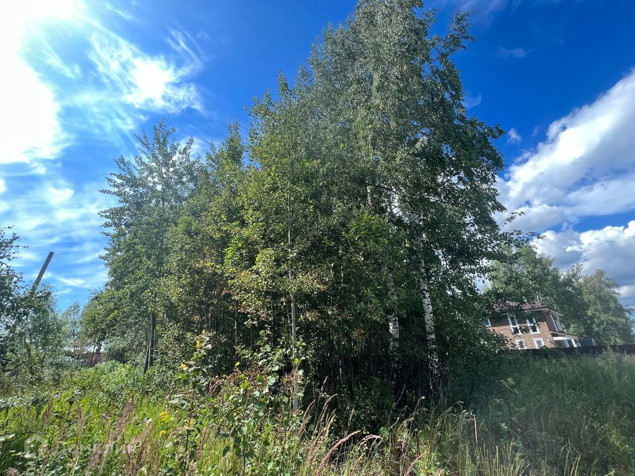 Участок ровный, прямоугольной формы с берёзовой рощей посередине.
