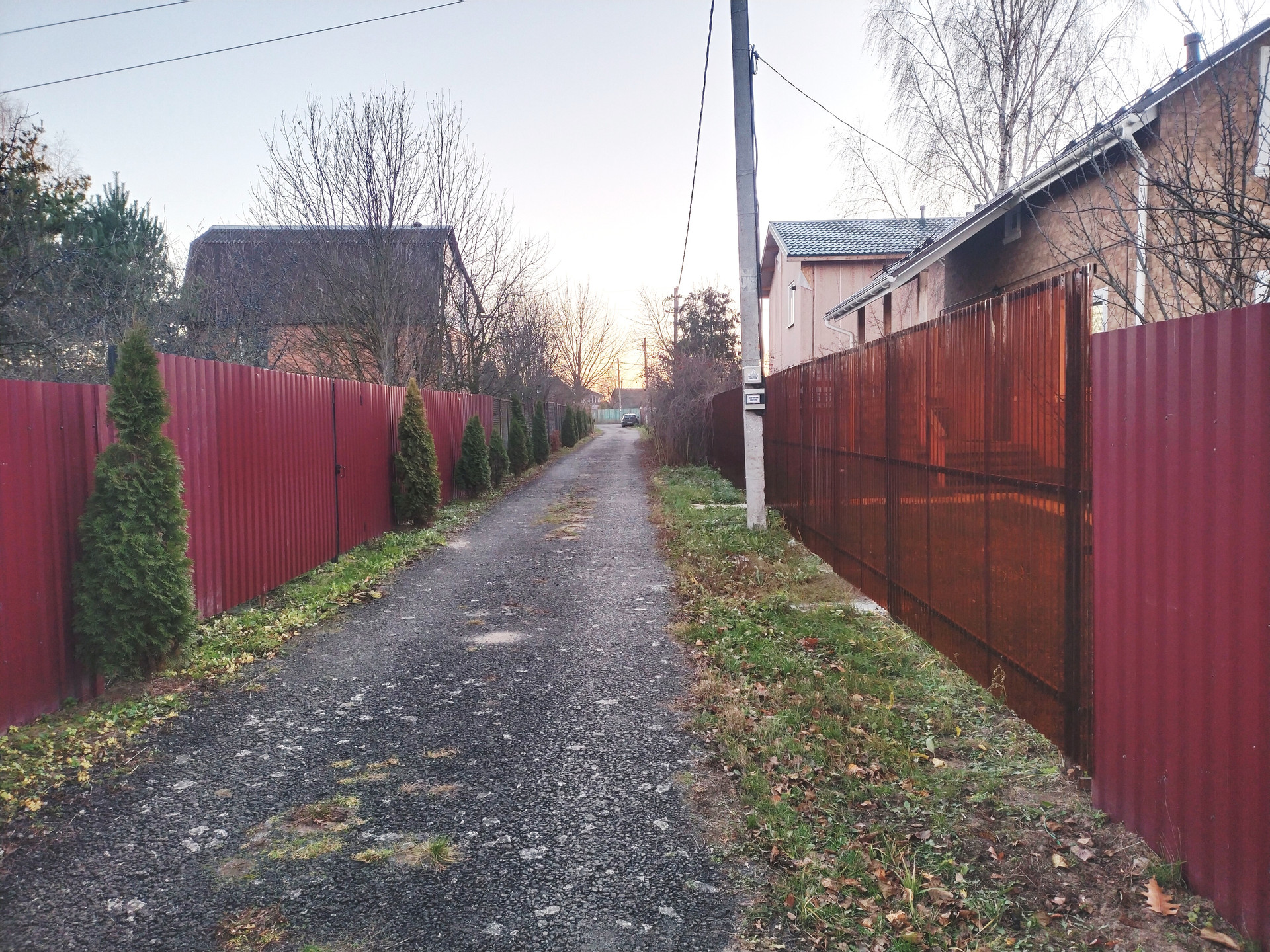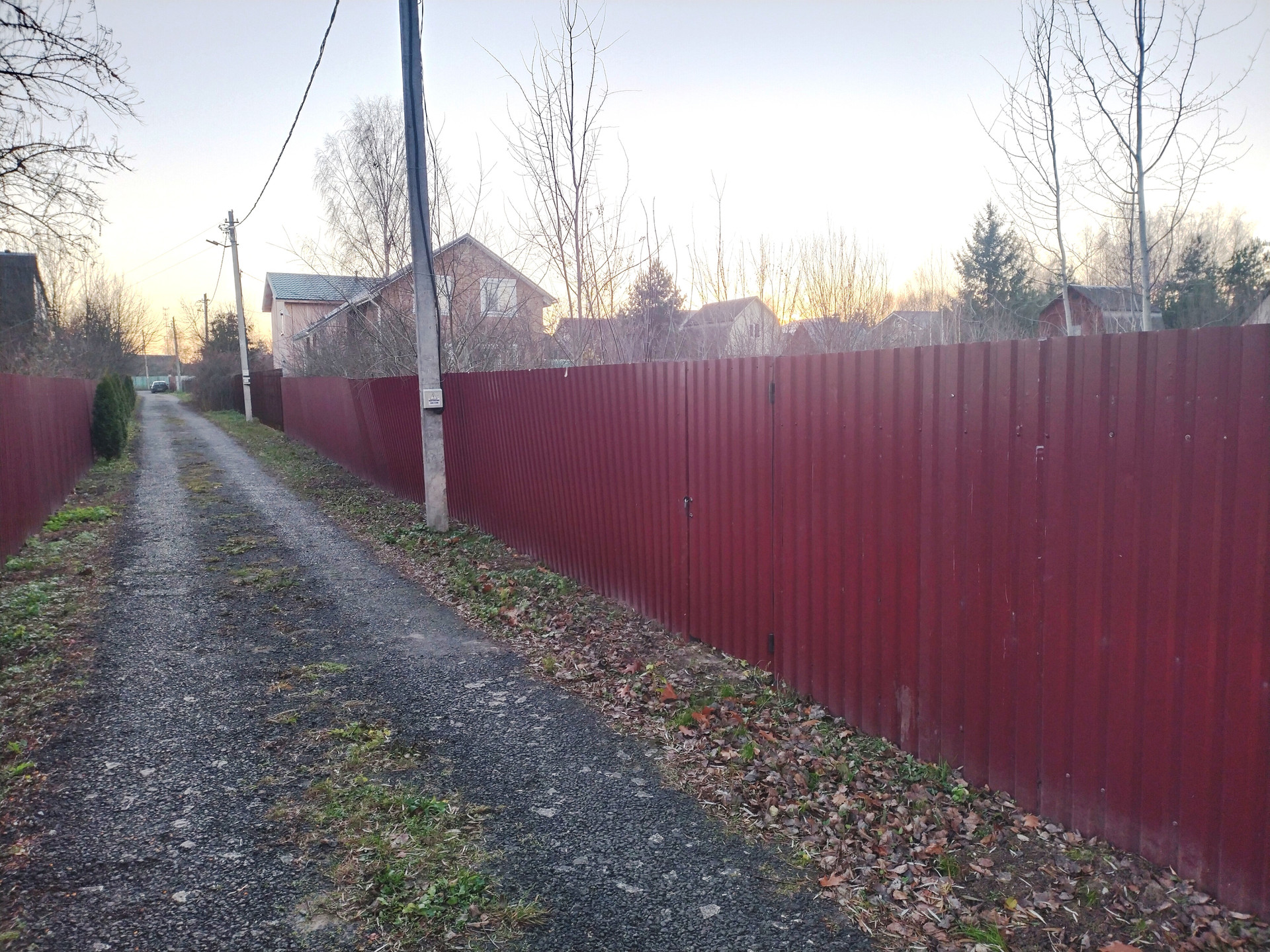 Участок ровный, правильной формы, сухой. Газ и электричество по границе участка. Закрытая территория с КПП, асфальт, уличное освещение, управляющая компания. Соседи живут круглогодично. Возможность прописки.