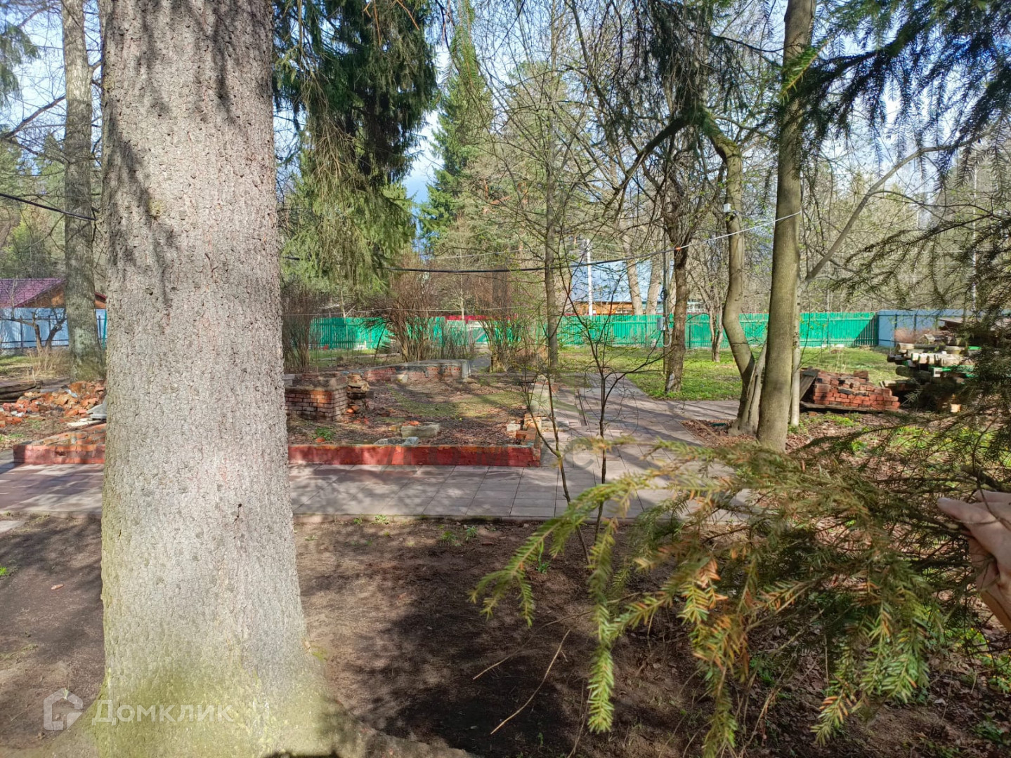 Участок ровный, сухой, огорожен с трех сторон. Наличие на участке елей, пруда, плодовых деревьев и кустарников создает неповторимую атмосферу.