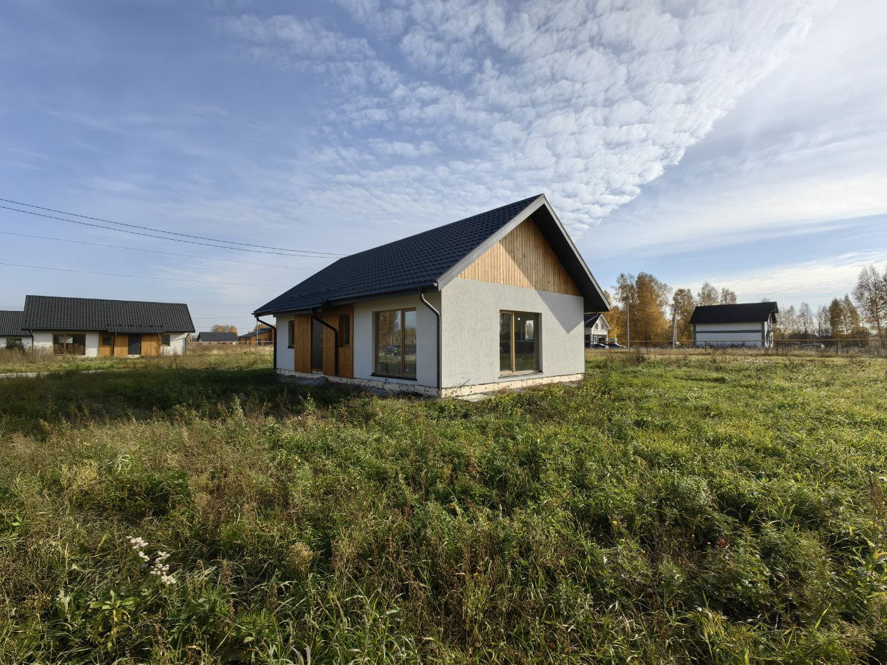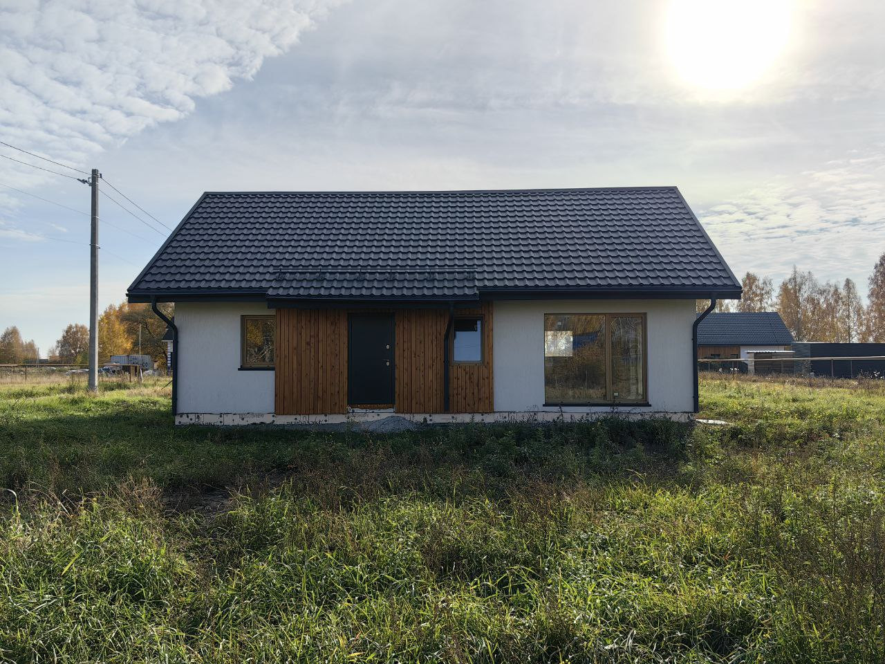 - Окна пвх с ламинацией, дверь с терморазрывом, утепленная крыша с огне и биозащитой, водосточная система, подшив свесов и карнизов;