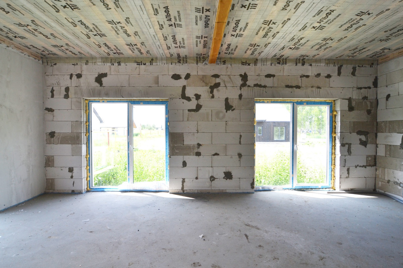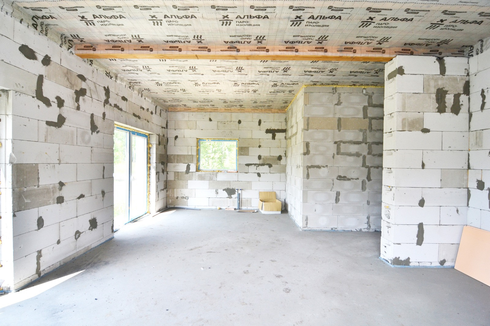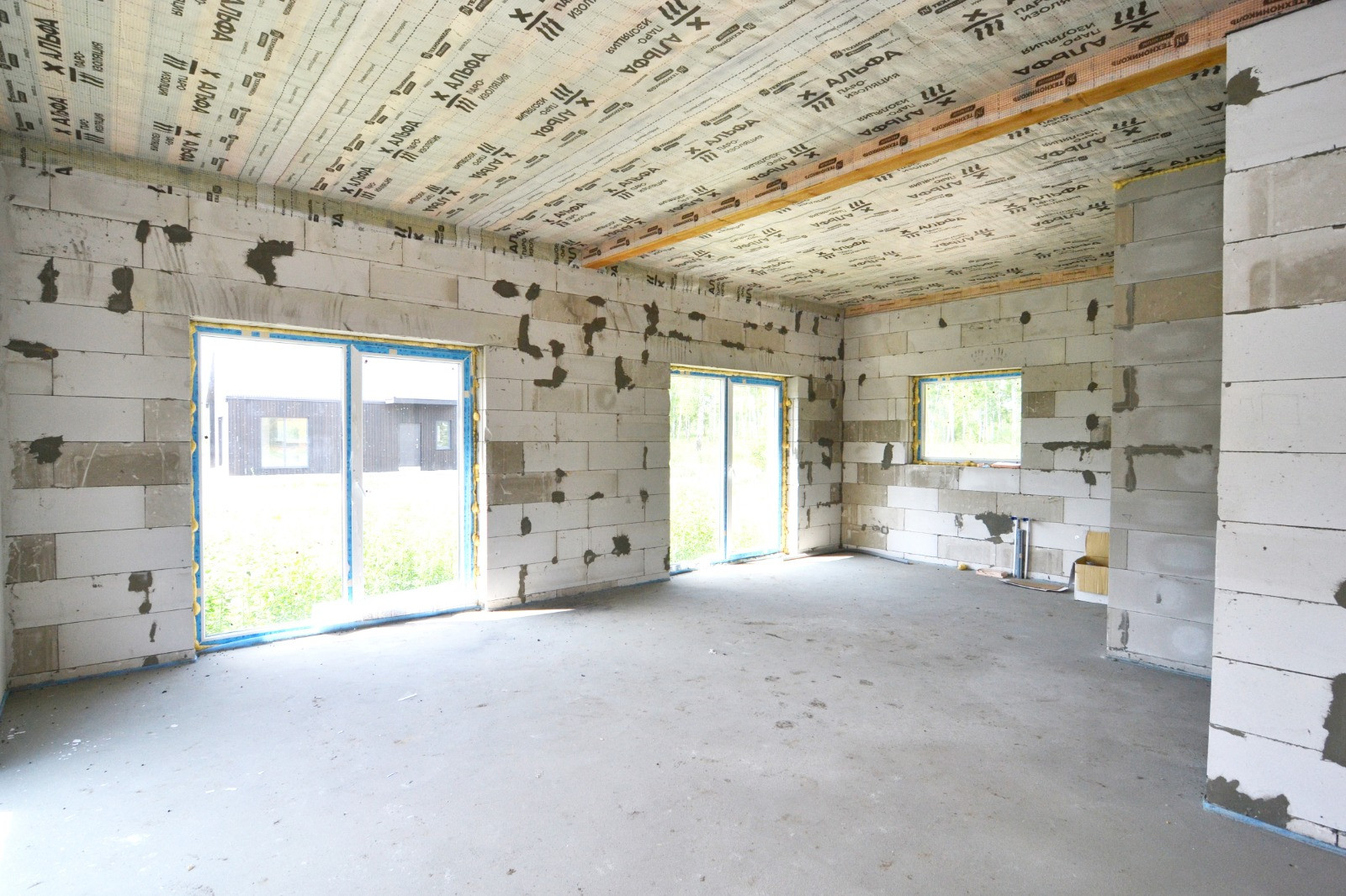 - Фундамент 25 см ж/б плита, коробка из сибита 400 мм, внешняя отделка, внутренние перегородки из сибита 150 мм;