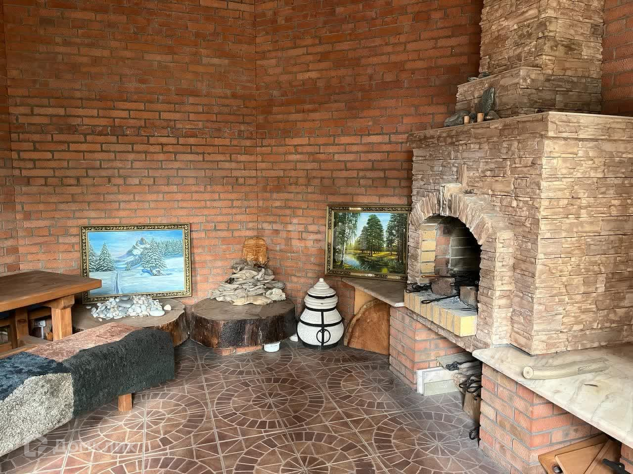 На участке в пятнадцать соток расположен кирпичный дом в два этажа, баня из бруса, с винным погребком, капитальная беседка из кирпича, с камином, гараж на два автомобиля(внедорожника).