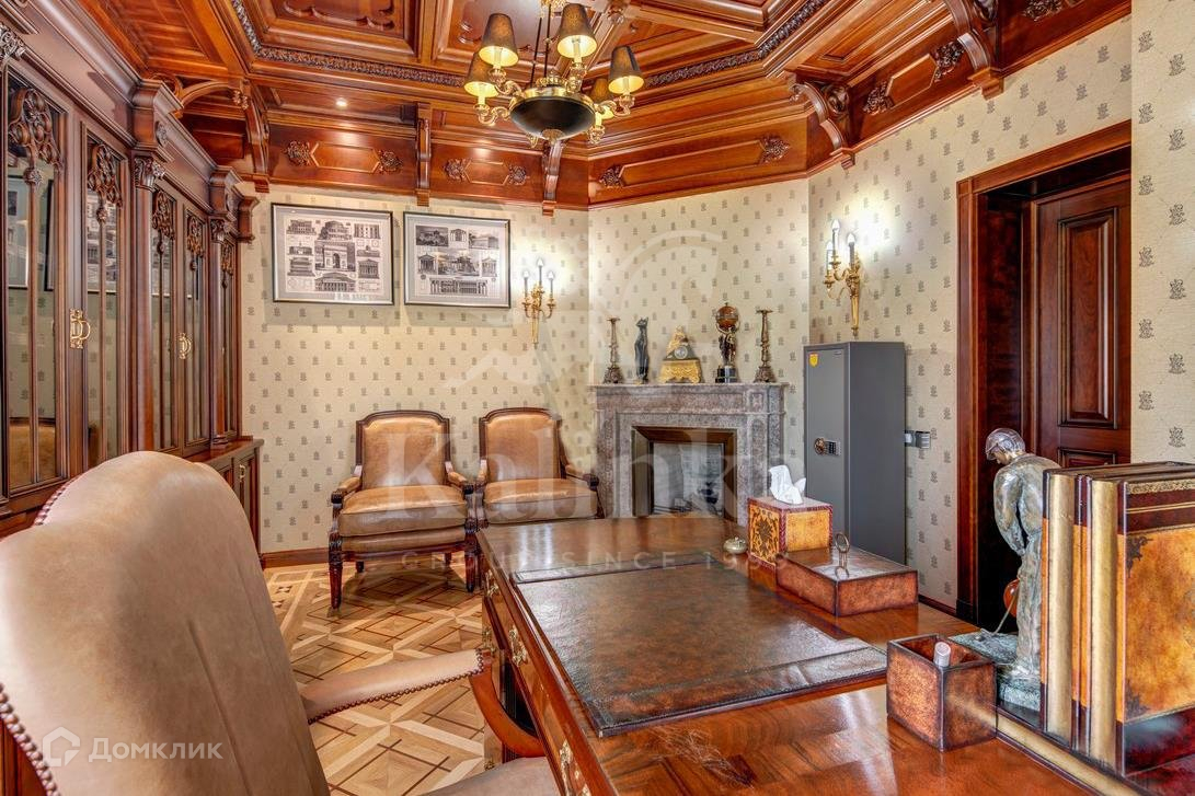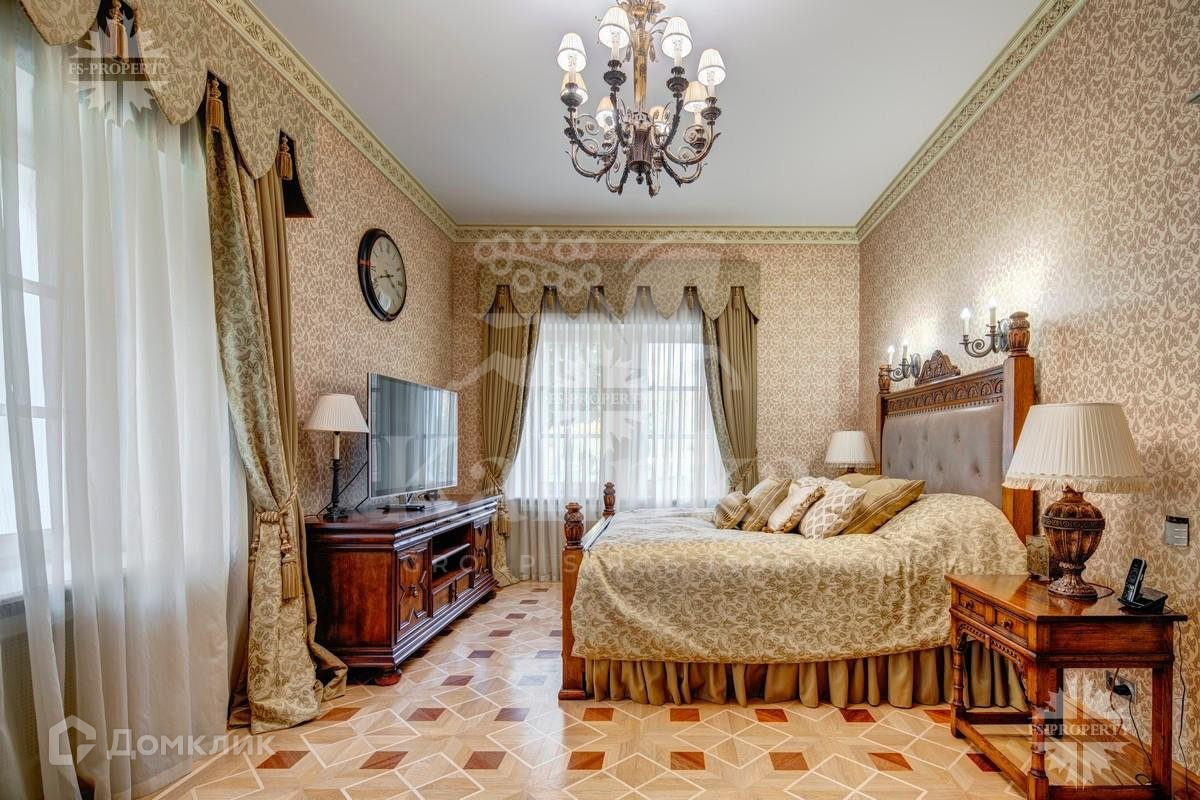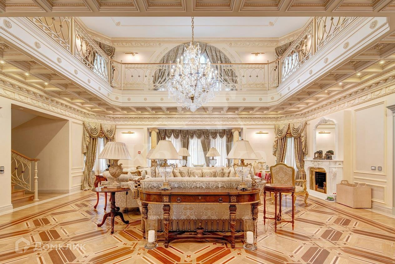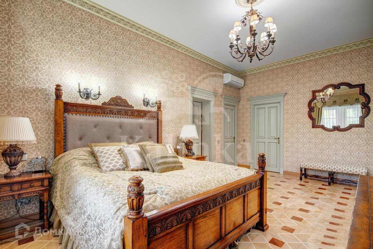 Интерьеры дома выдержаны в классическом стиле. В планировке предусмотрены 5 спален с ванными и гардеробными комнатами, просторная гостиная со вторым светом, кабинет с камином, кинотеатр, хамам с зоной отдыха гараж на 3 м/м. На участке проведены ландшафтные работы, высажены декоративные деревья, кустарники и лесные деревья, расположен природный пруд и прогулочные зоны.
