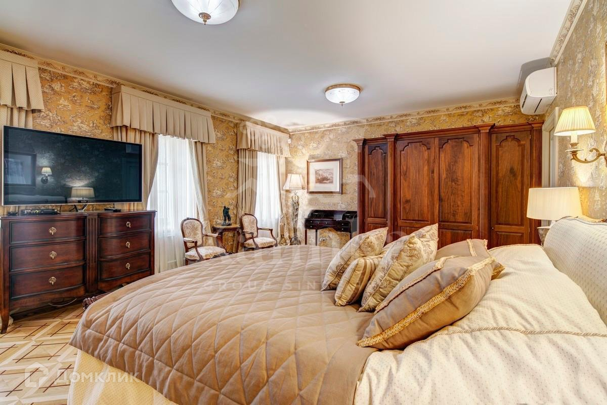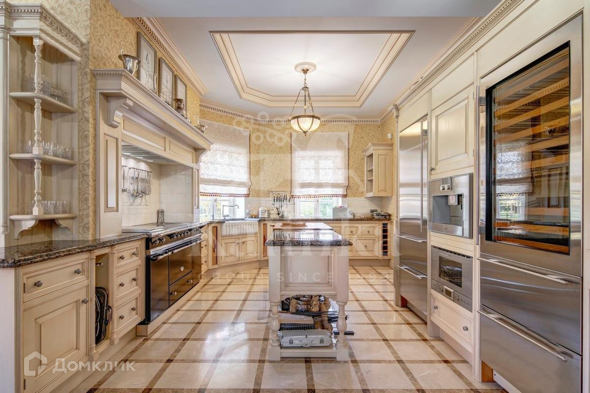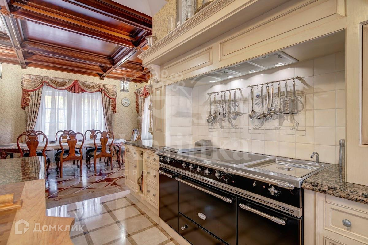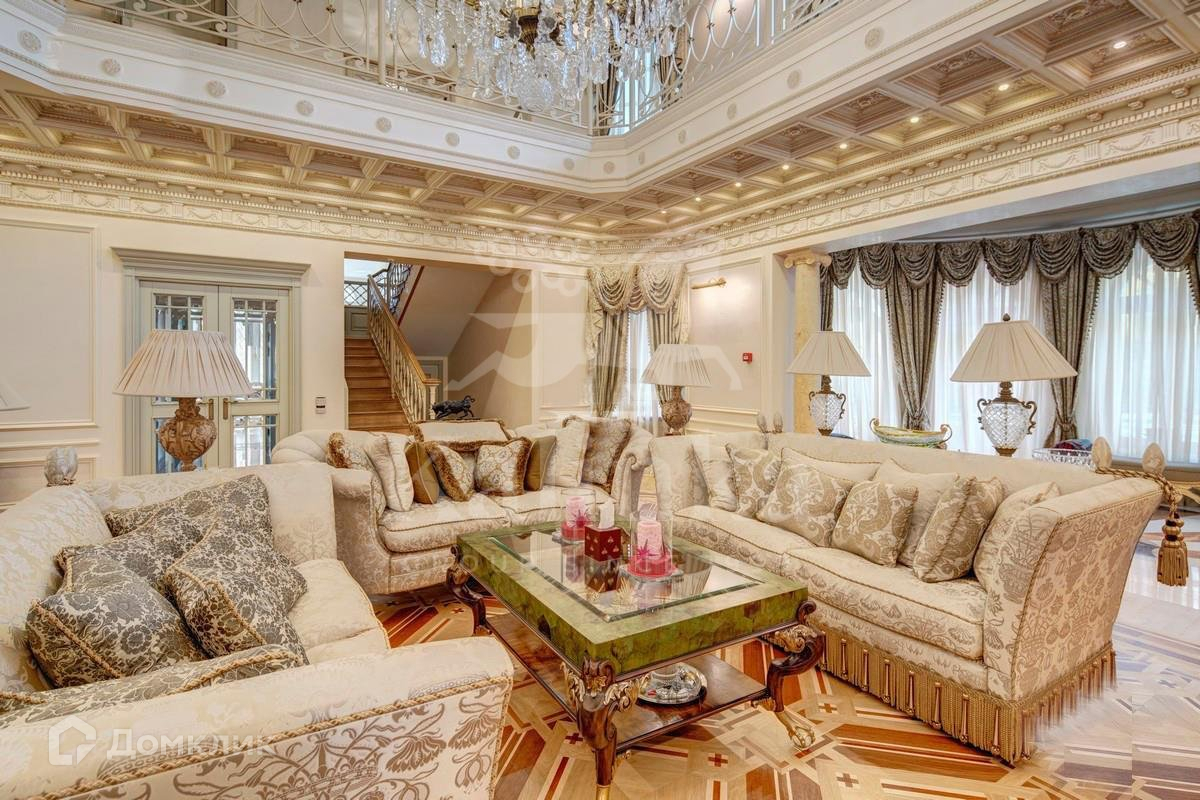 Интерьеры дома выдержаны в классическом стиле. В планировке предусмотрены 5 спален с ванными и гардеробными комнатами, просторная гостиная со вторым светом, кабинет с камином, кинотеатр, хамам с зоной отдыха гараж на 3 м/м. На участке проведены ландшафтные работы, высажены декоративные деревья, кустарники и лесные деревья, расположен природный пруд и прогулочные зоны.