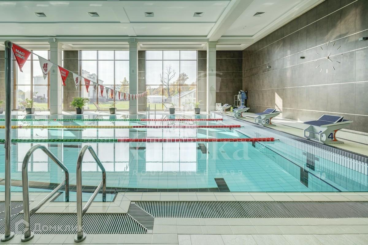 О поселка: территория огорожена, ведется видеонаблюдение, круглосуточная служба эксплуатации, на территории расположен современный спортивно-оздоровительный комплекс с 25-метровым бассейном, тренажерным залом, сауной, хамамом и зоной отдыха, детская площадка, открытый спортивный корт, природный пруд с зоной отдыха, летний павильон для барбекю.