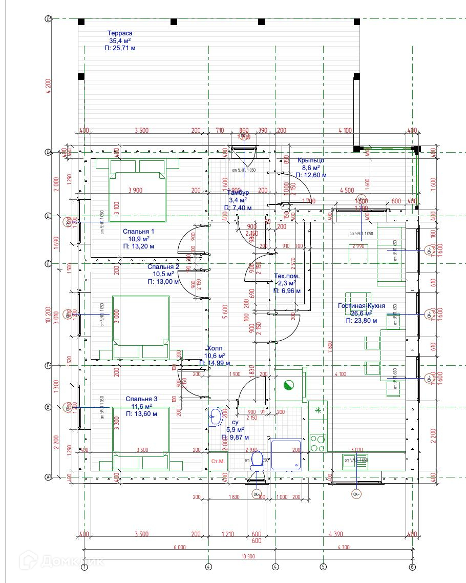 Дом 1 этажный на плите (без лестниц и других не нужные конструкций) + большая терраса НА ПЛИТЕ