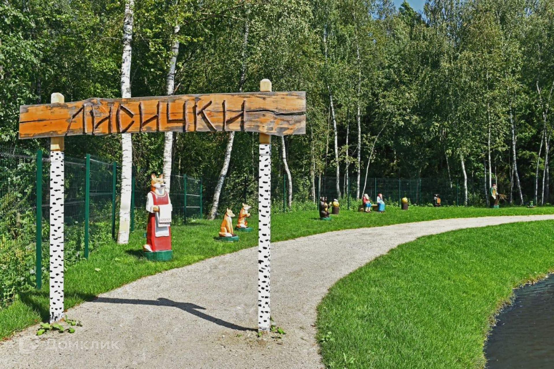 - свой пруд с лебедями,- спорт площадки,
