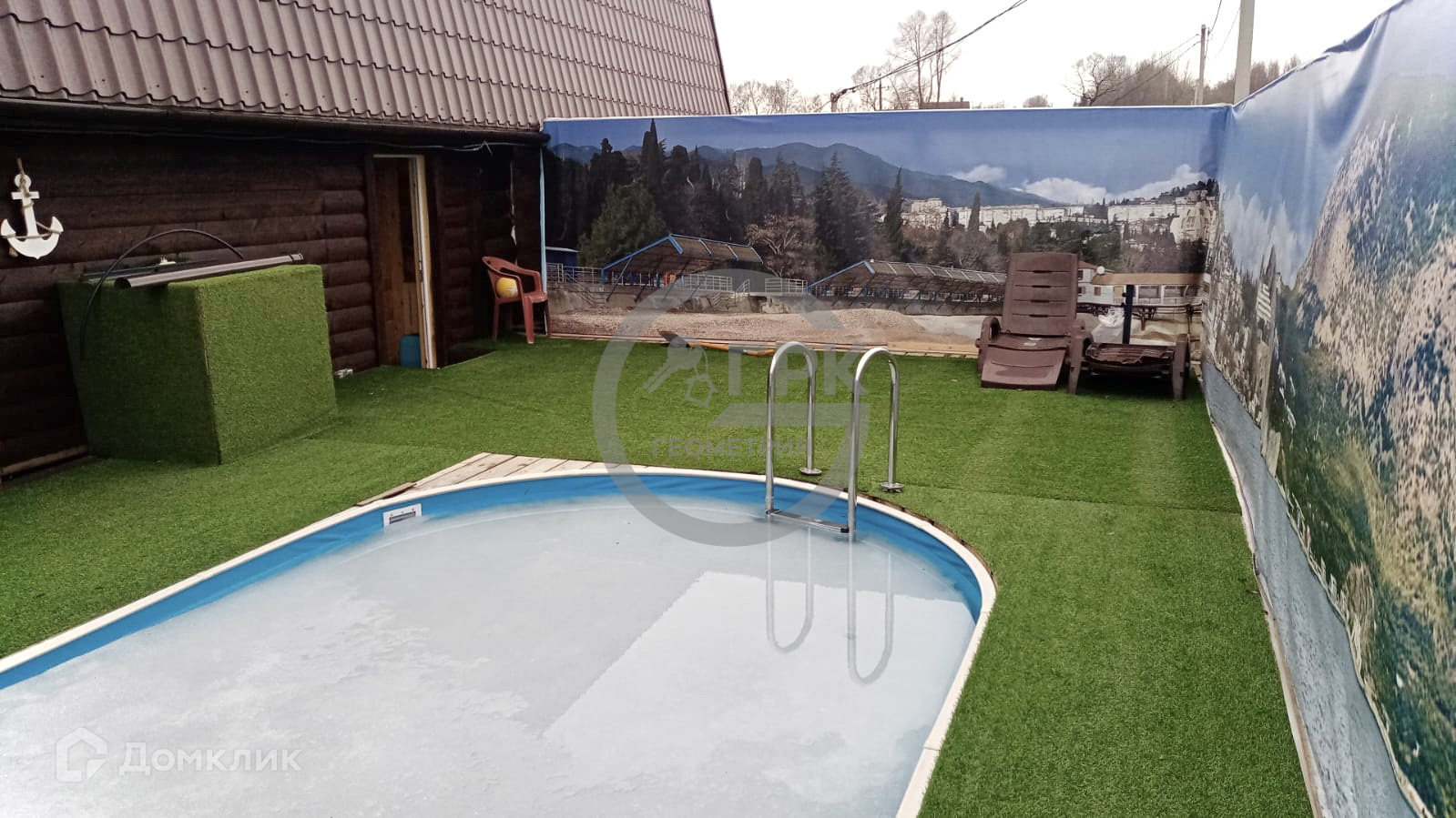На участке построены дом и банный комплекс, большой бассейн, беседка барбекю.