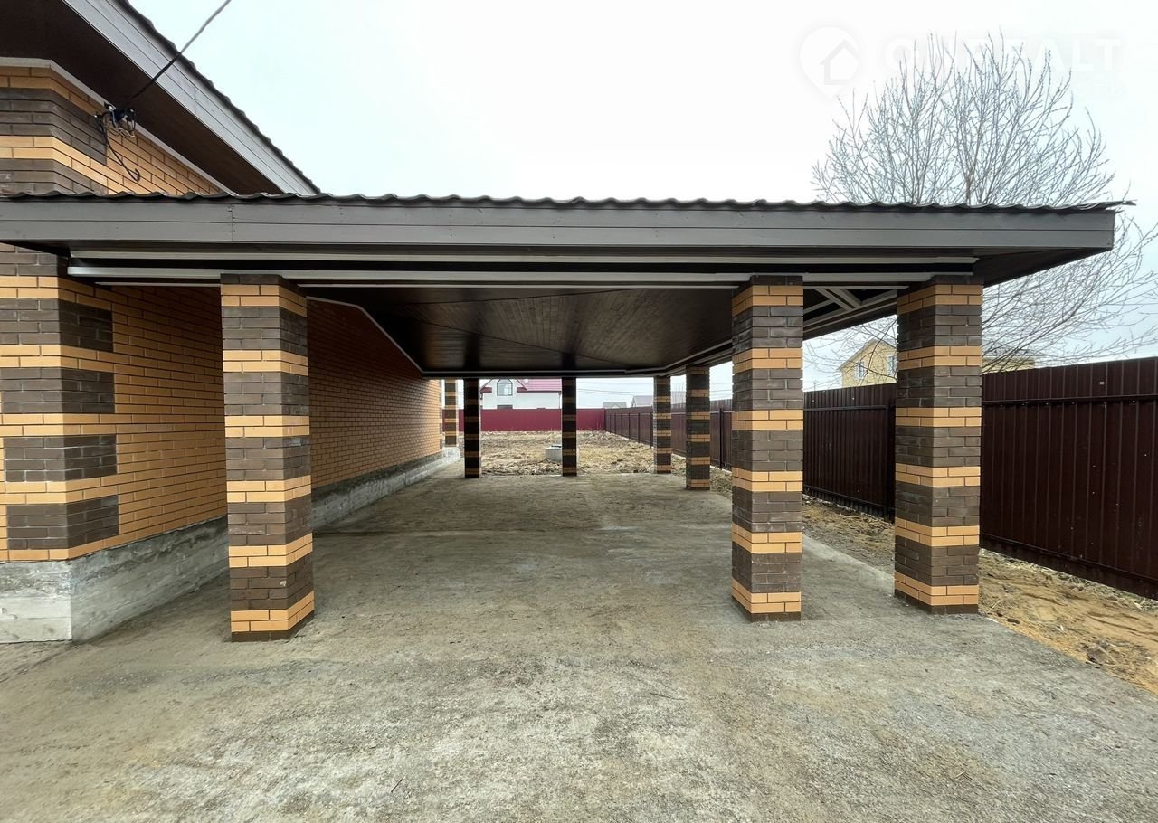 Фундамент монолитная плита, стены пеноблок, отделка кирпич, крытая парковка под несколько автомобилей!