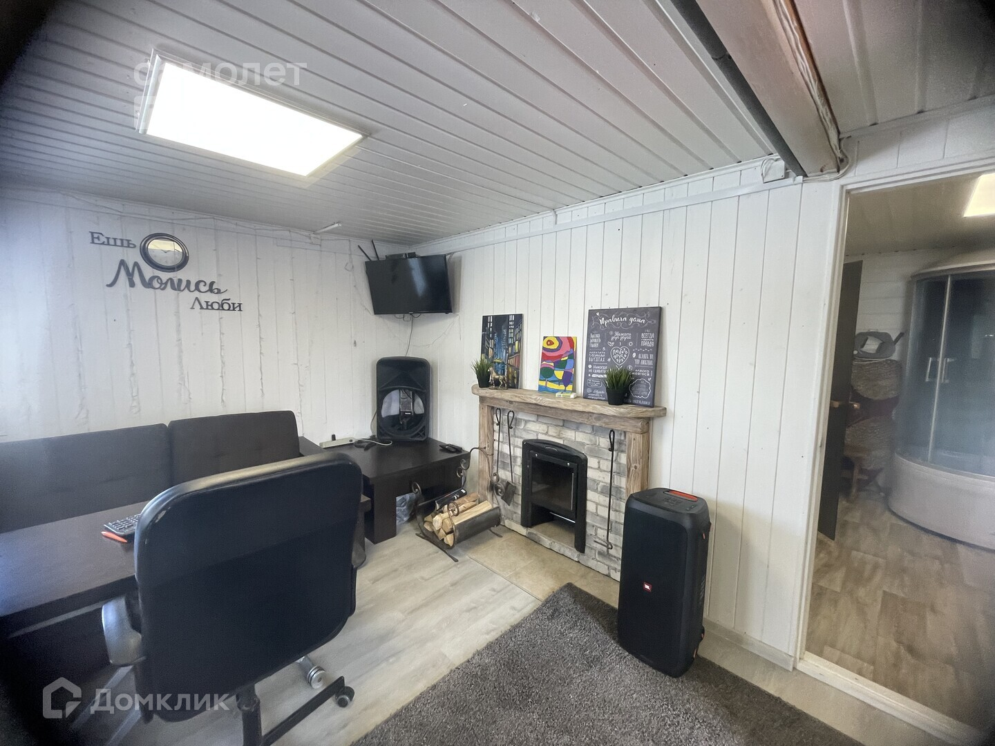 - гостиная с камином и с кухней