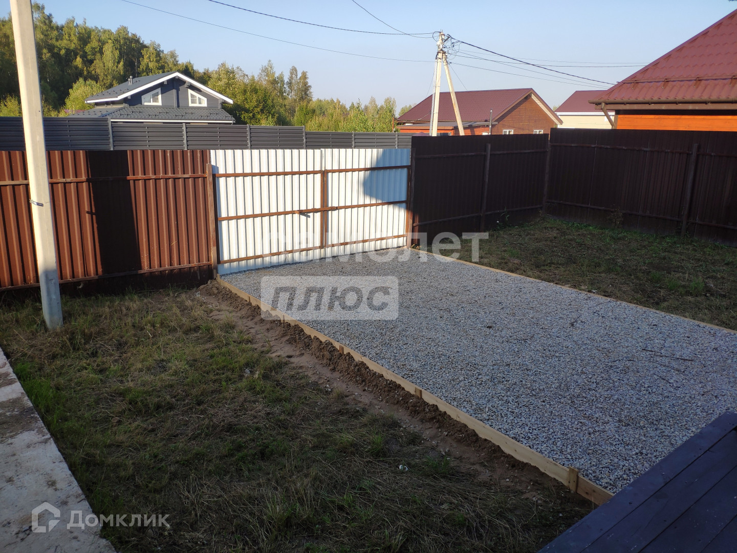 Огорожен с сеткой рабицей и профлистом;
