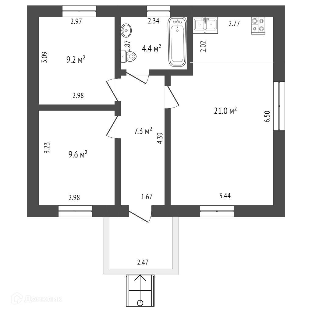 Общая площадь 53.6 м2