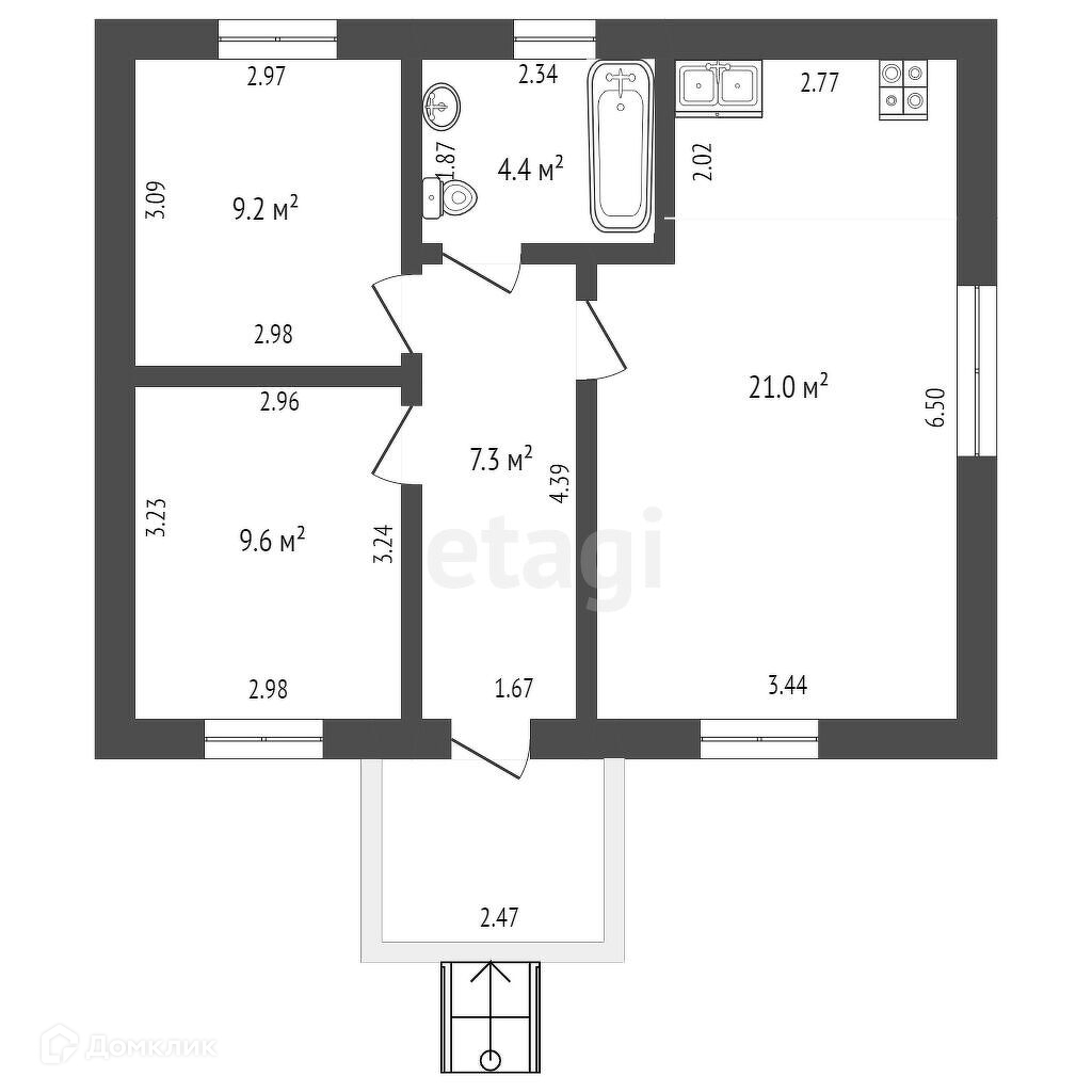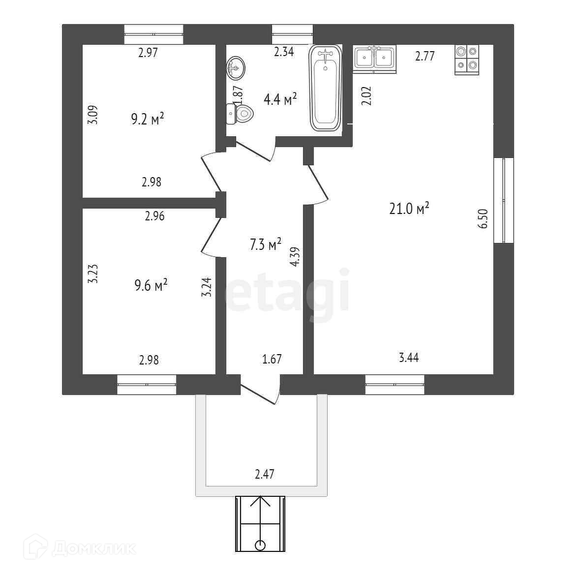 Общая площадь 53.6 м2