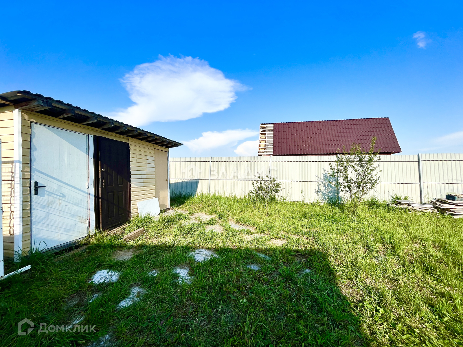 По всему периметру забор с воротами и калиткой.