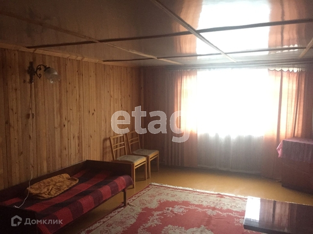 Дом из бруса, добротный, строили для себя. На первом этаже расположены две спальни и одна - на втором этаже. Внешние стены облицованы сайдингом.