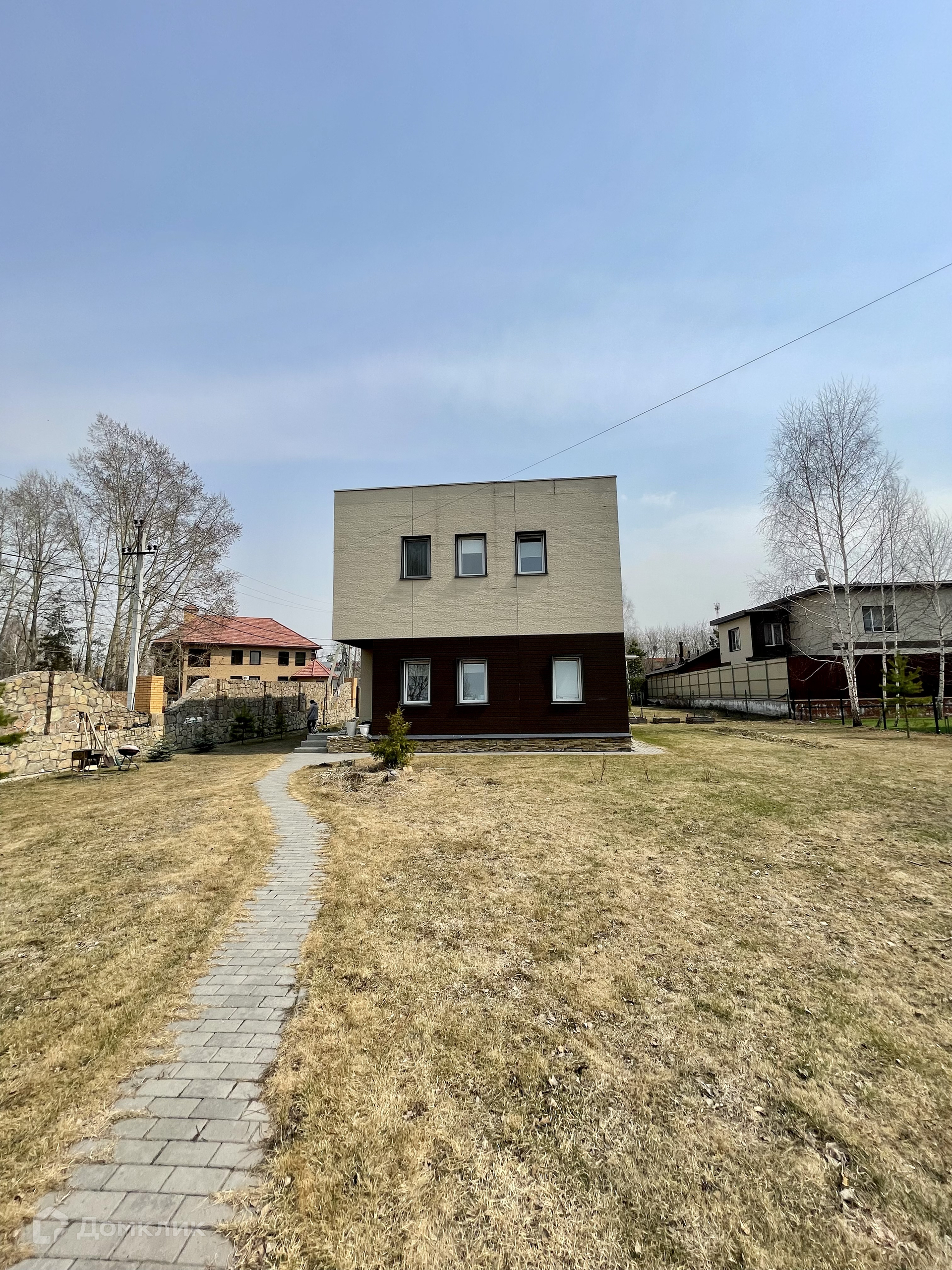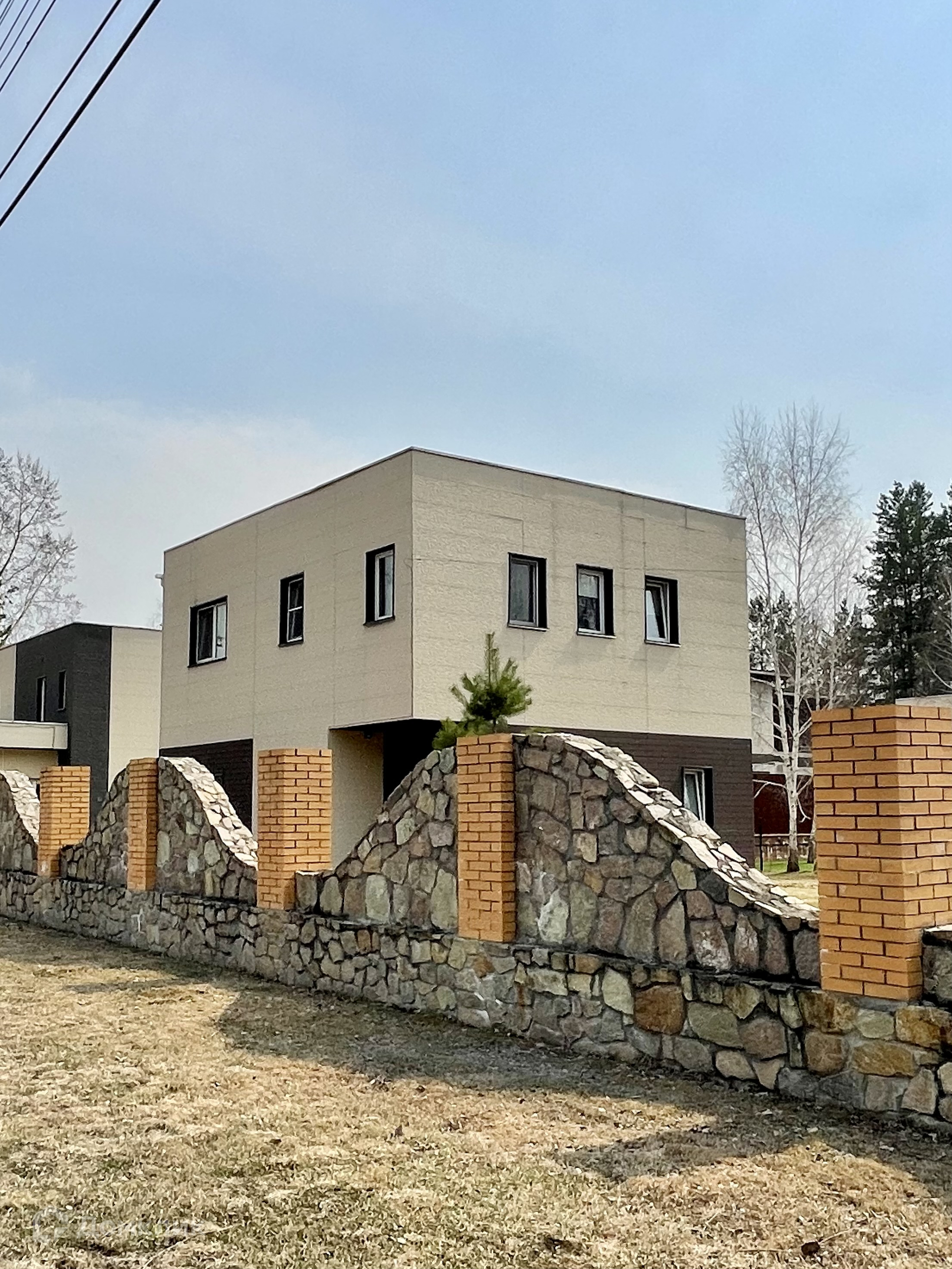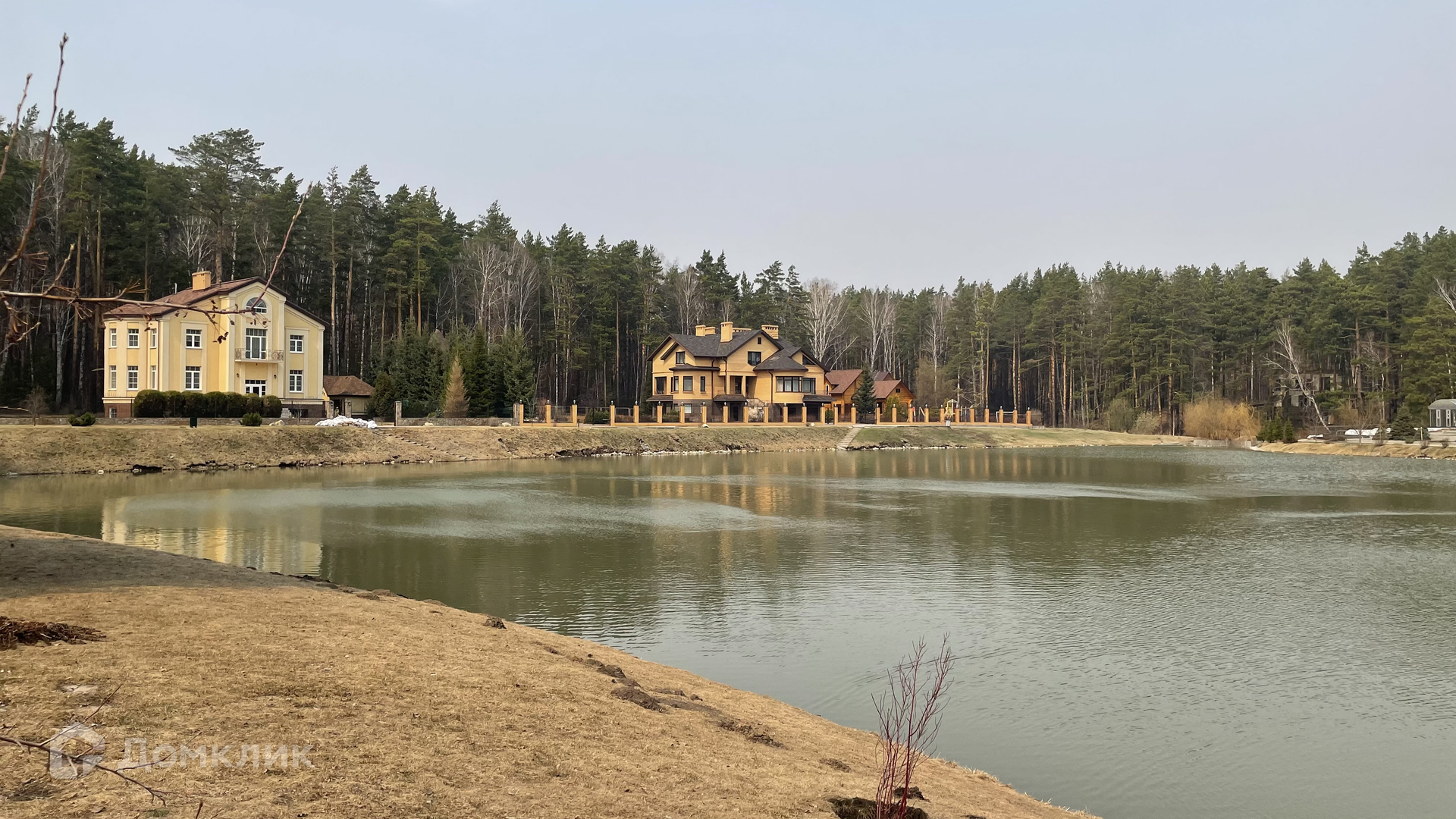 Коттедж находится в тихом, закрытом посёлке на границе с  городом, но при этом окружён сосновым бором, на территории есть большое красивое озеро.