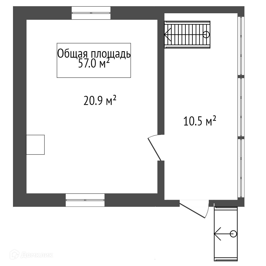 Общая площадь 57 м2