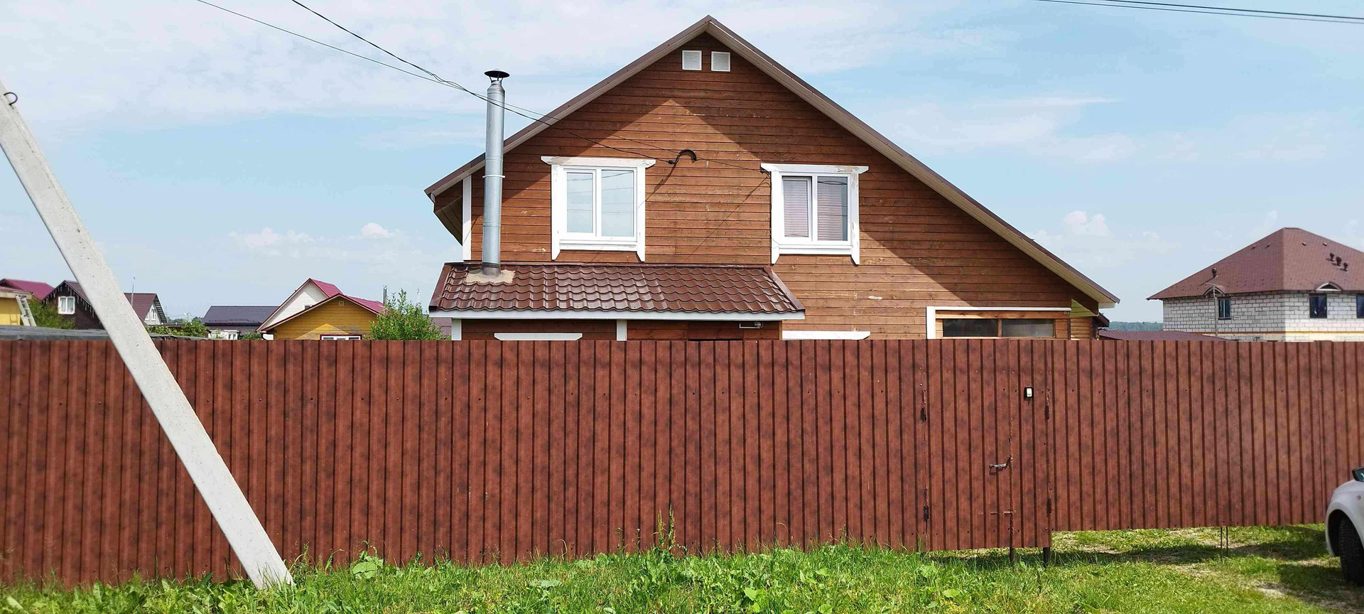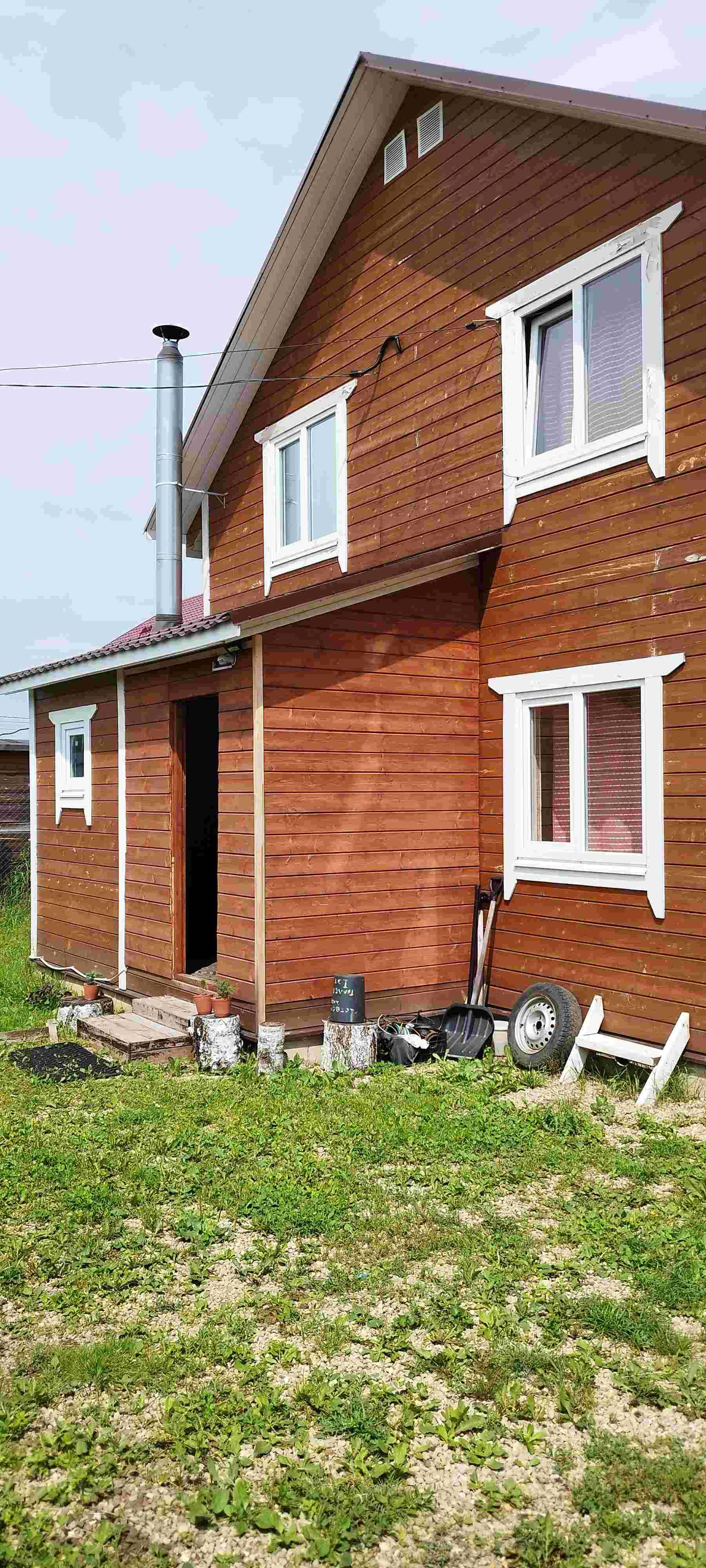 Фундамент-ленточный,крыша металлочерепица,окна ПВХ,отопление-дровяной и электрический котел.Септик. Колодец 5 колец. Свет 5кв. Газ по границе.