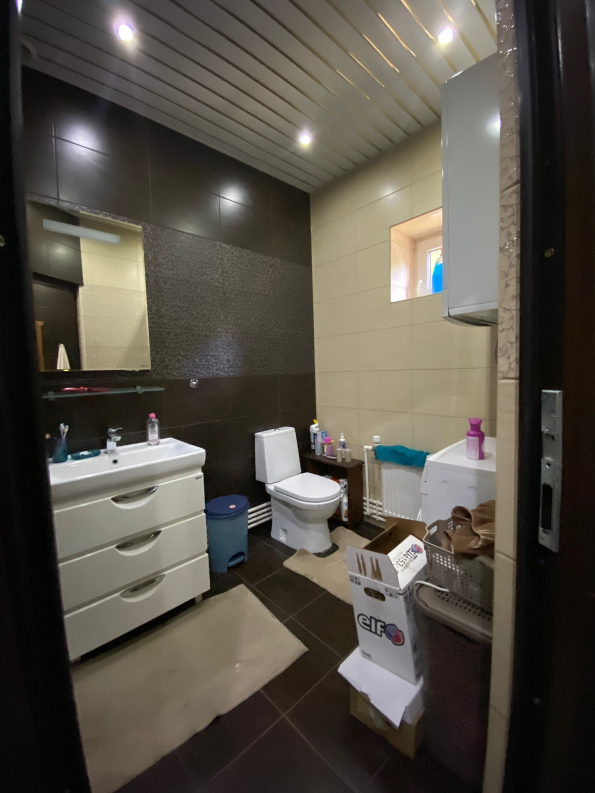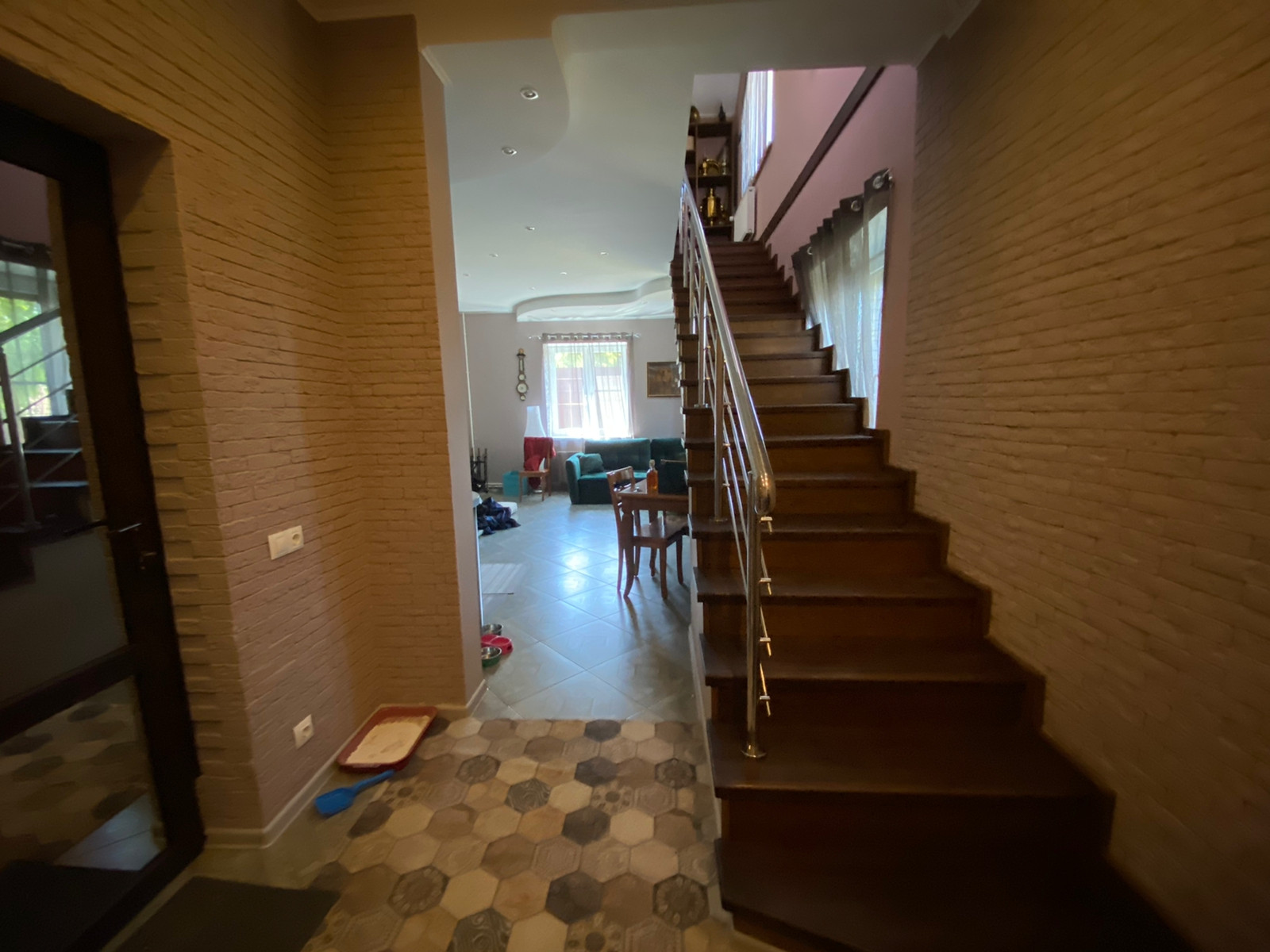 Дом построен в 2016 году, фундамент – плита утепленная с ребрами; стены из пеноблока, утеплитель + облицовочный кирпич (толщина стен 48 см);