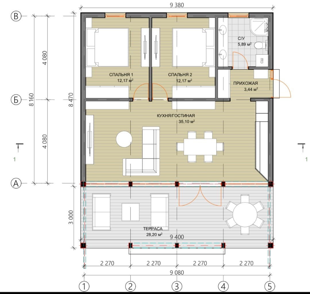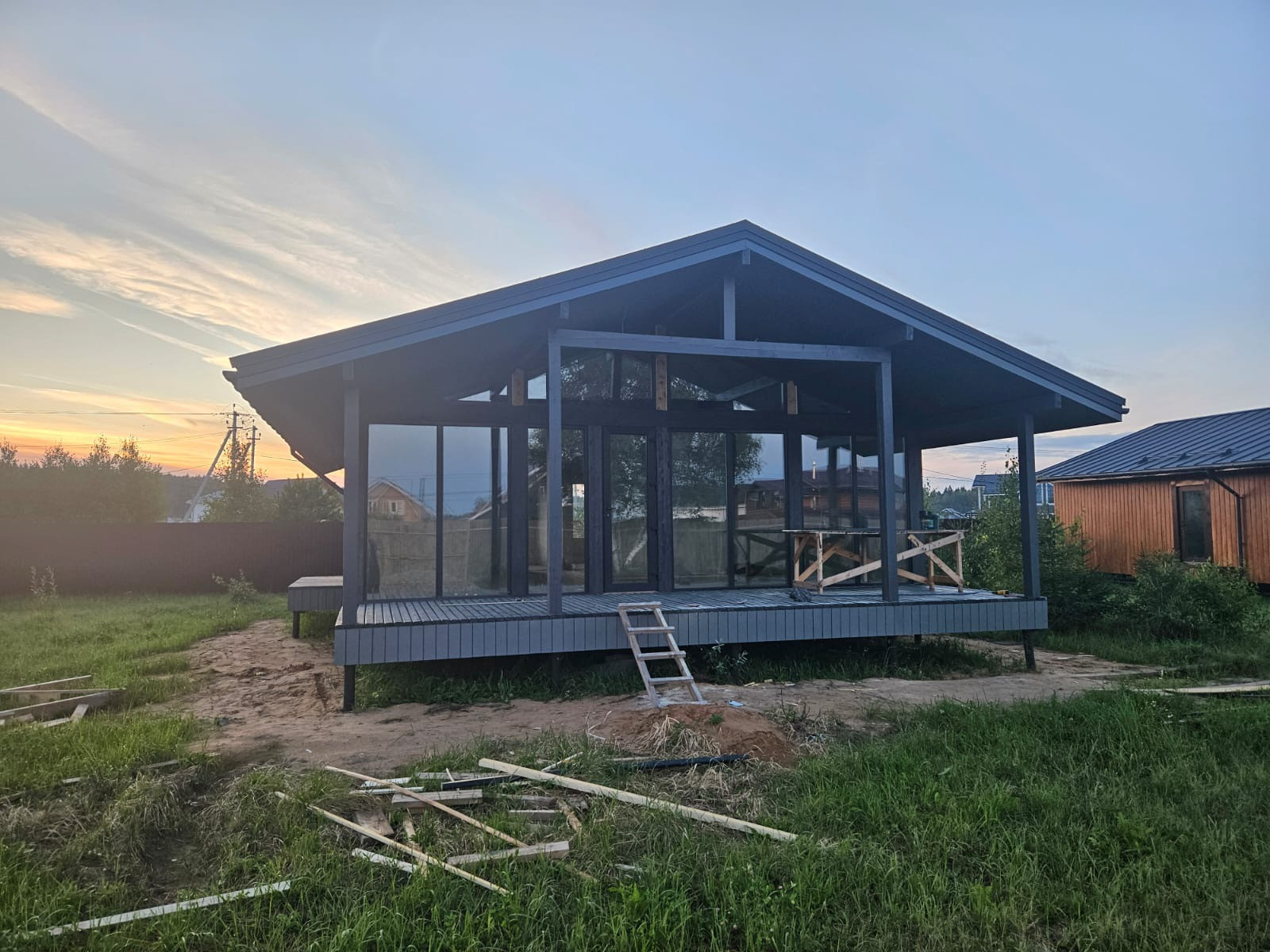 Готовая внутренняя отделка: Стены обшиты гипсокартоном, подготовленным для чистовой отделки. Полы черновые, покрыты плитами OSB толщиной 22 мм, что позволяет легко провести дальнейшую отделку по вашему вкусу.