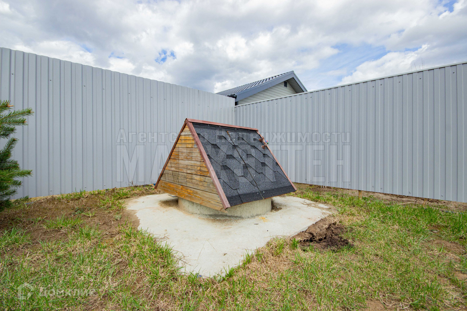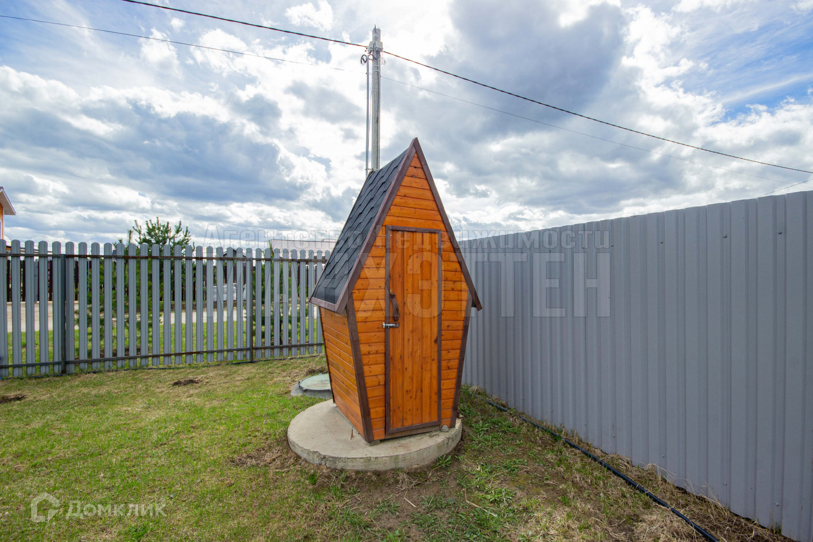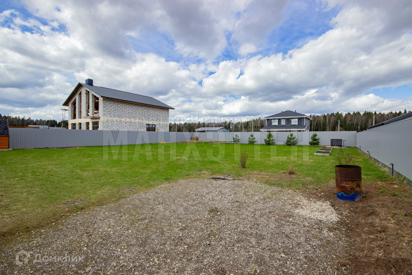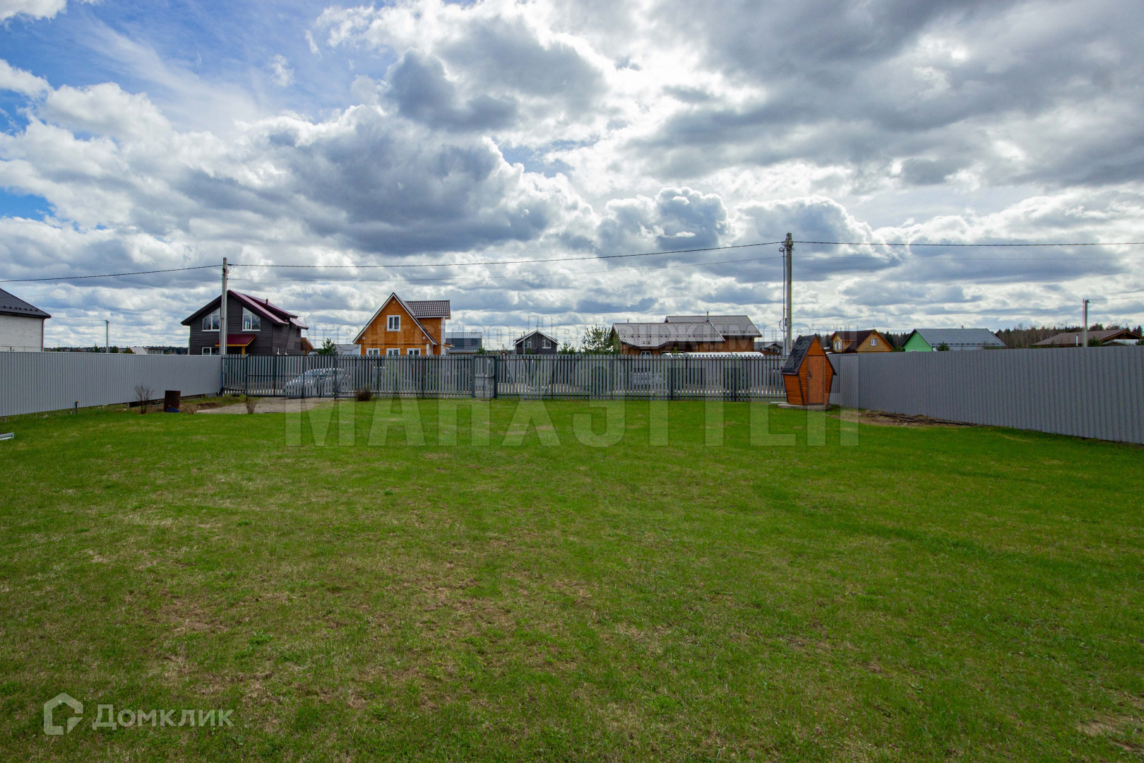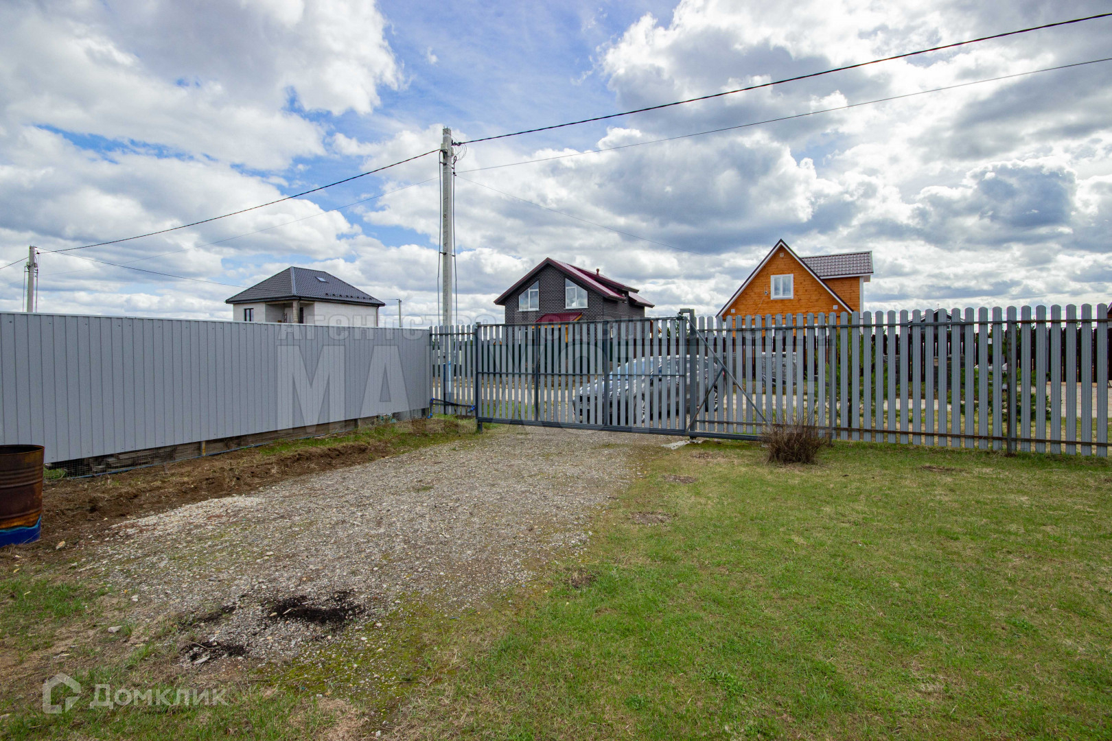 Находиться на главной улице, огорожен с трех сторон профлистом, со стороны улицы - металлический штакетник, откатные ворота, калитка;