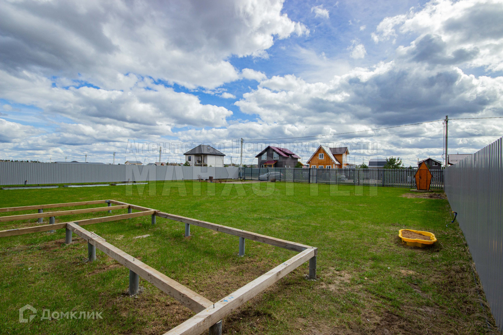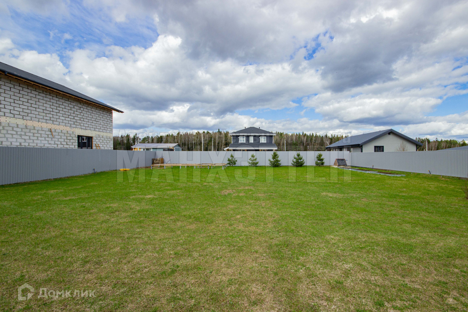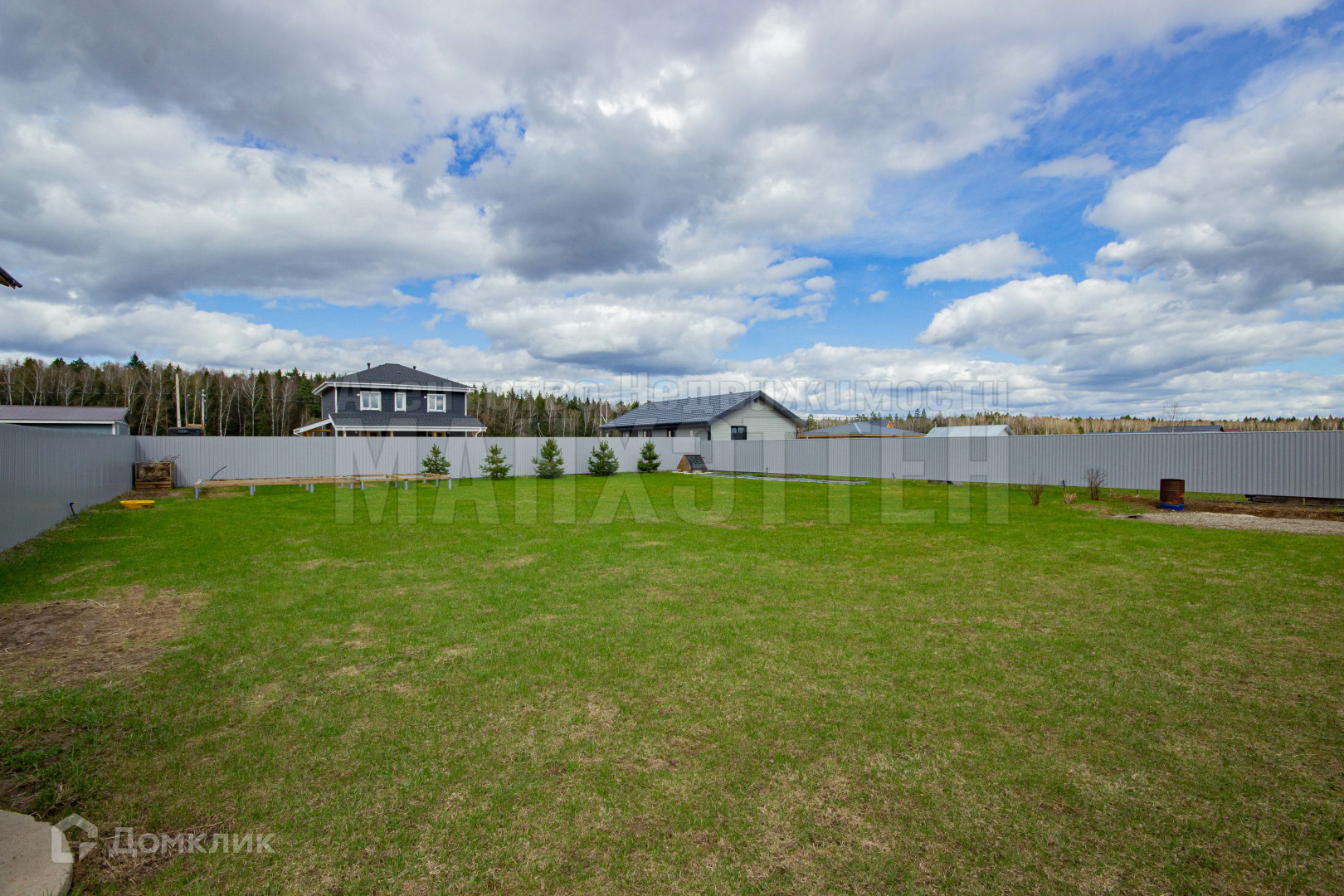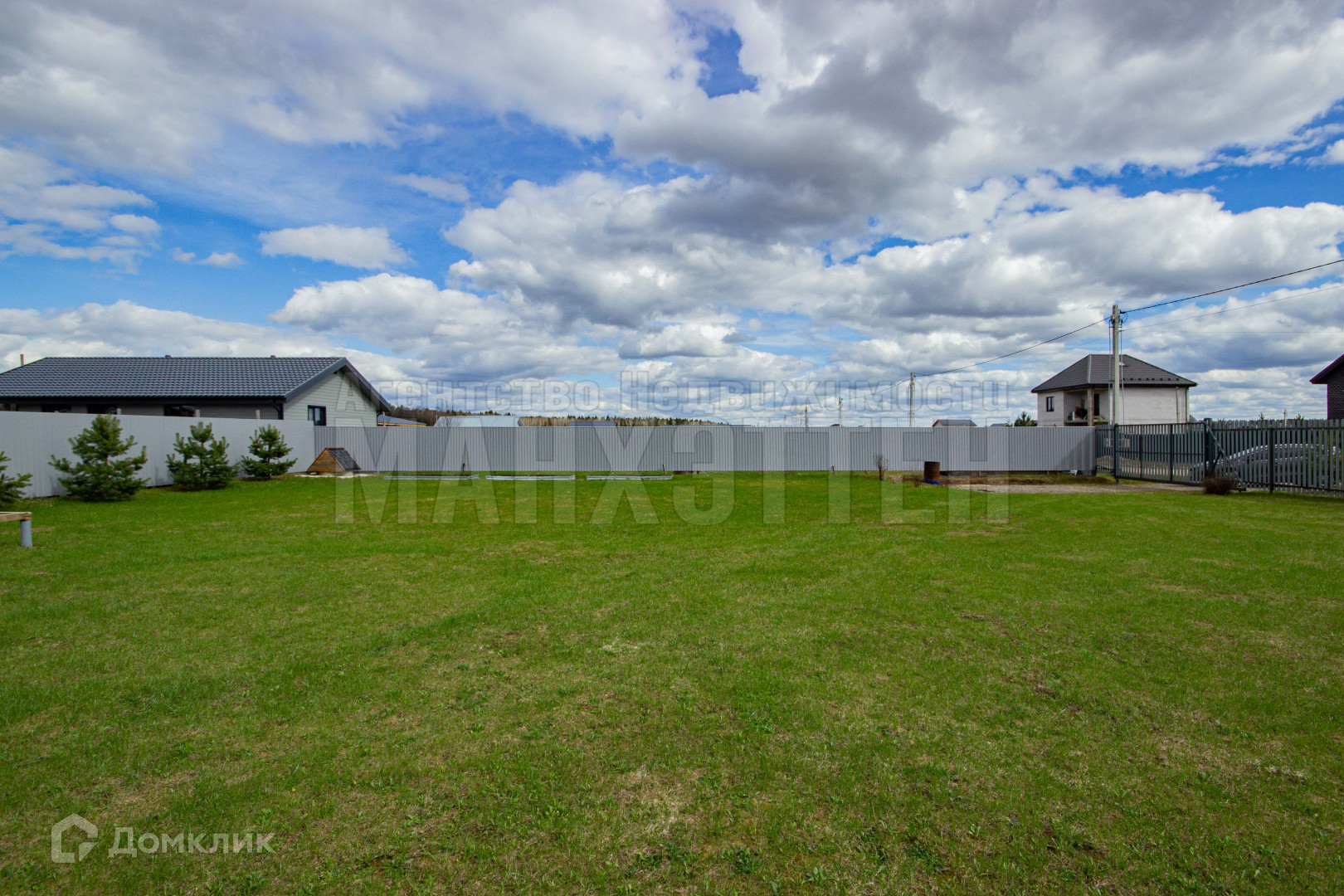 Участок сухой, ровный, правильной прямоугольной формы, размером 27м*32м, имеет большую придомовую территорию (5м*27м) с соснами, газоном, системой скрытого полива. В дренажную канаву перед участком проложена 250 мм асбестовая труба, на въездной группе - пластиковая усиленная труба 300 мм, въезд под машину отсыпан щебнем;