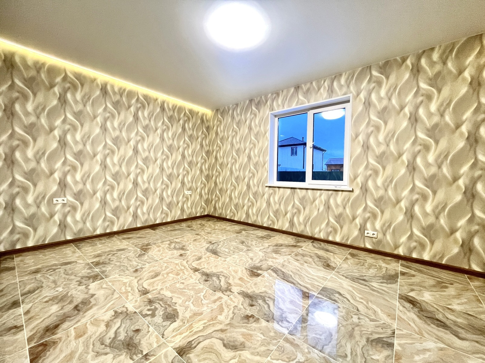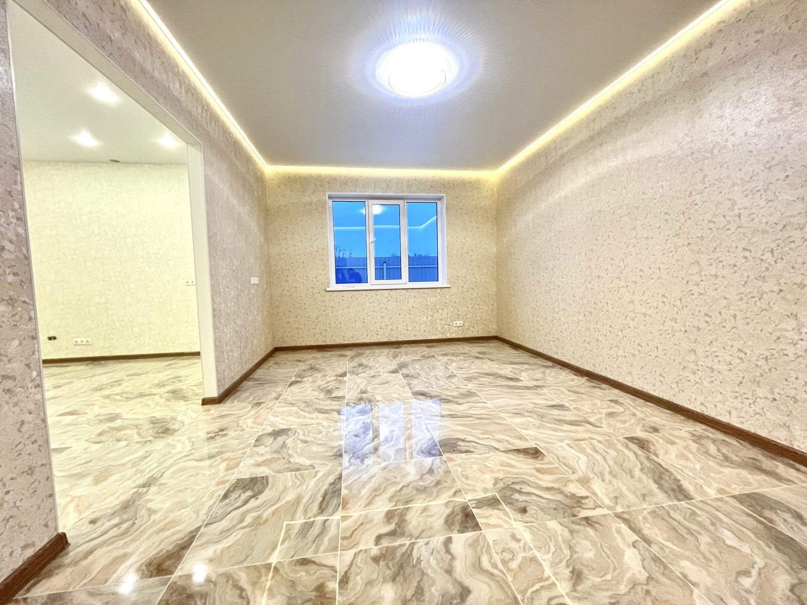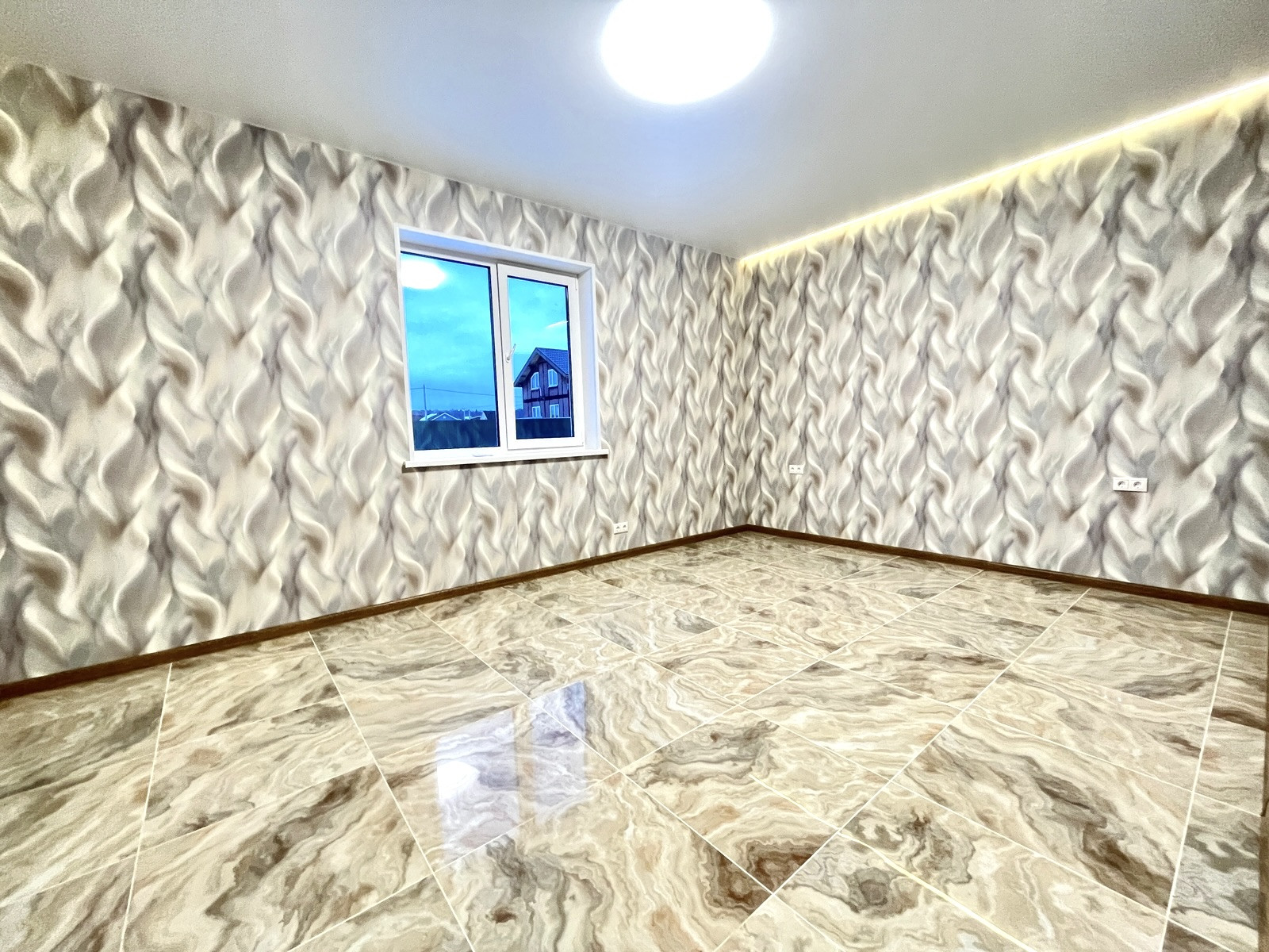 В доме сделан качественный ремонт: на стенах - обои; на полу - керамогранит; натяжные потолки с подсветкой.