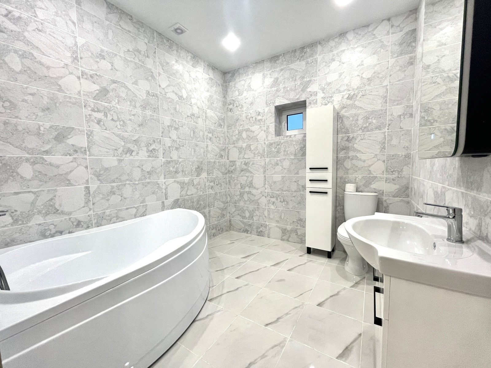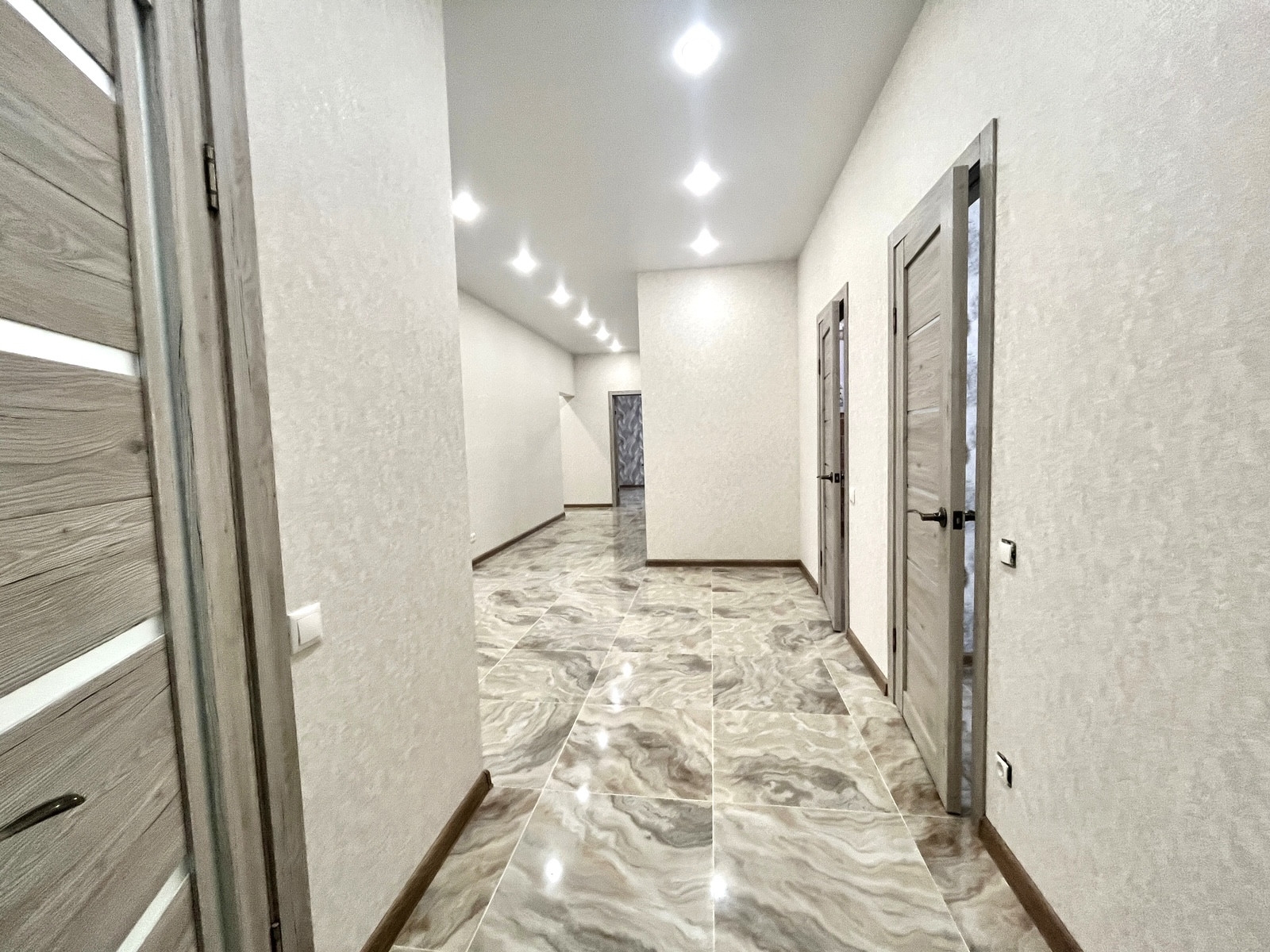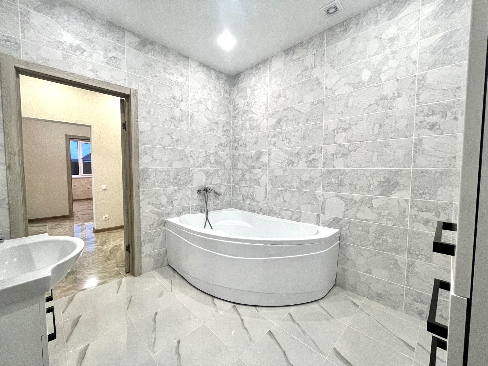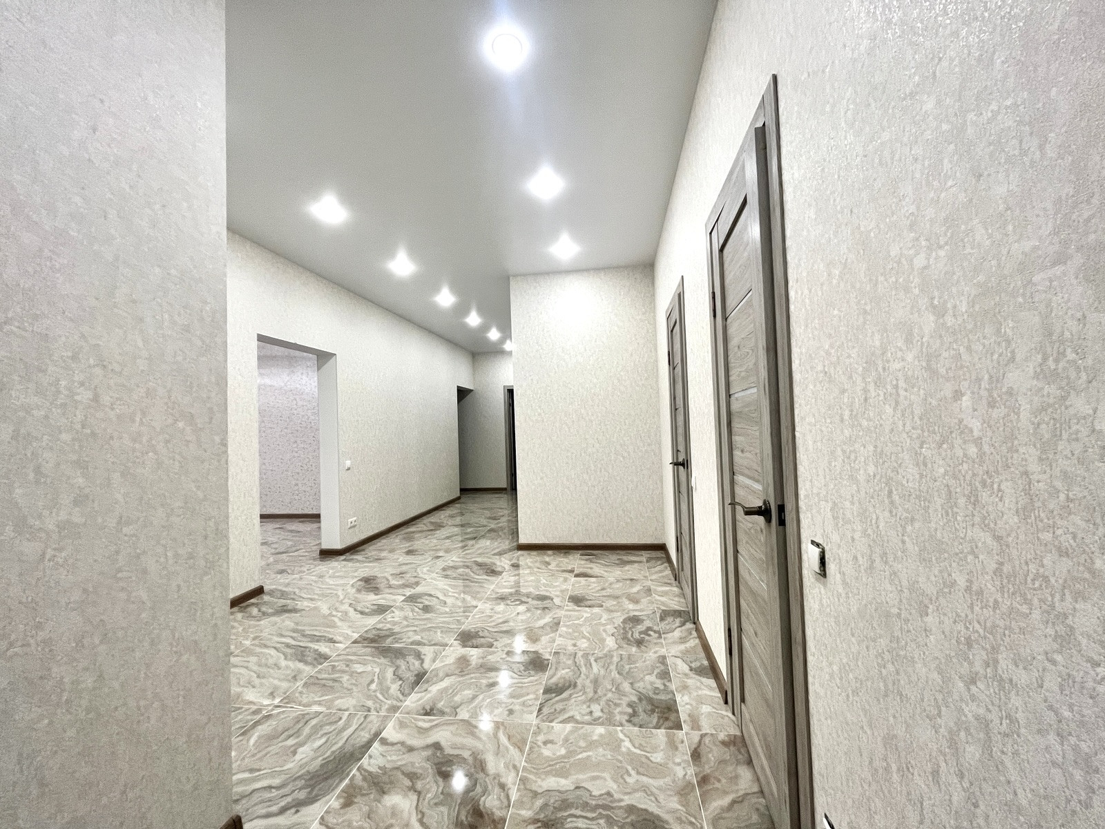 В доме сделан качественный ремонт: на стенах - обои; на полу - керамогранит; натяжные потолки с подсветкой.