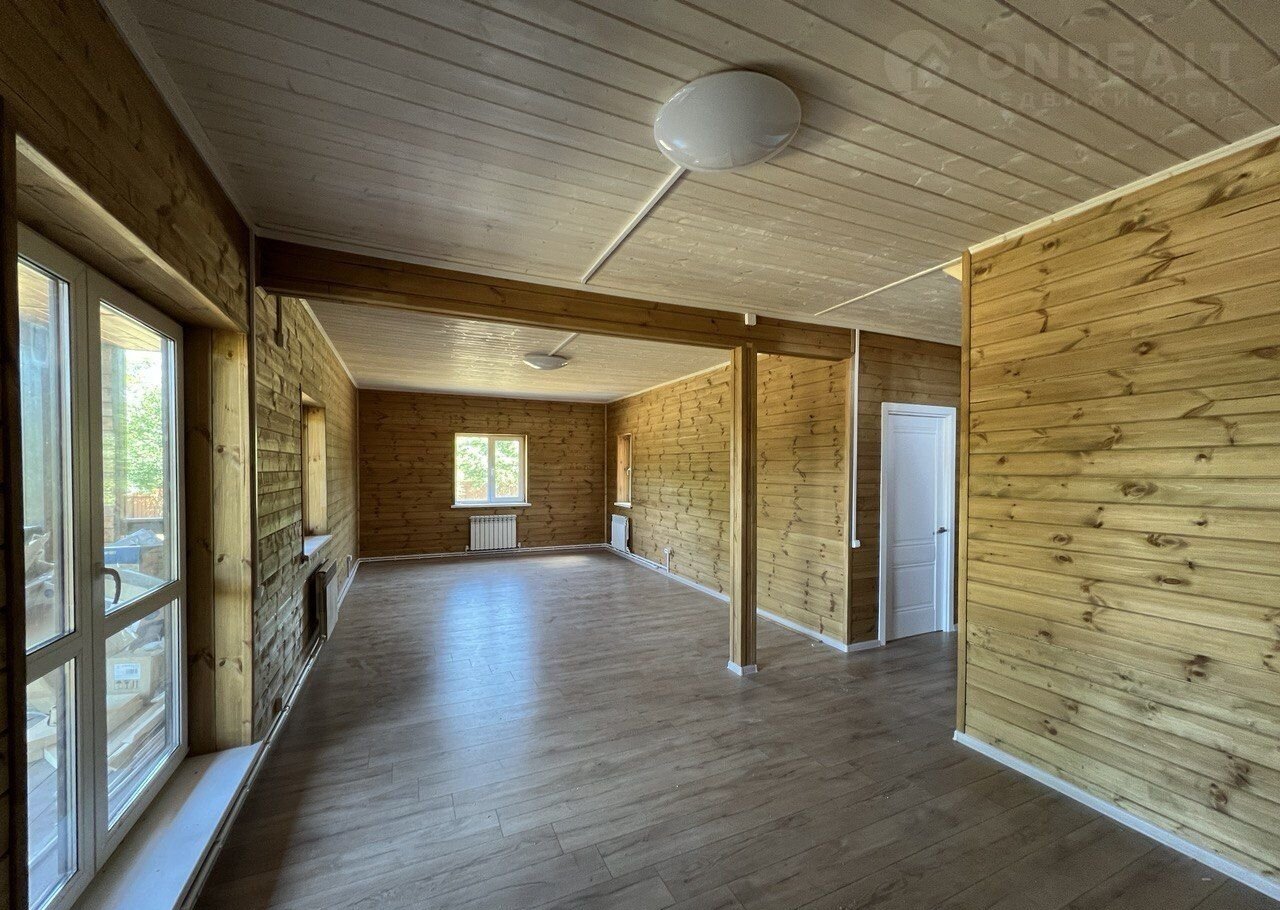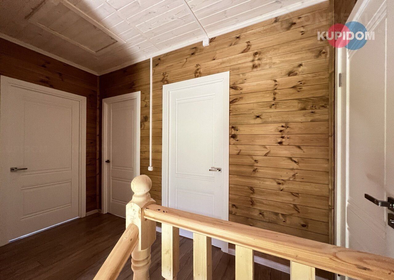 Фундамент: армированный ленточный. Материал стен: брус 150х100 с утеплением 100 мм+пароизоляция и ветрозащита, произведена обработка био-огнезащитой; Внешняя отделка стен:окрашенная имитация бруса; Внутренняя отделка дома: окрашенная вагонка; Окна: двухкамерные стеклопакеты с ламинацией; Крыша: металлочерепица; Потолки: окрашенная вагонка; Полы: ламинат/санузел керамическая плитка; Двери: входная утепленная с терморазрывом.